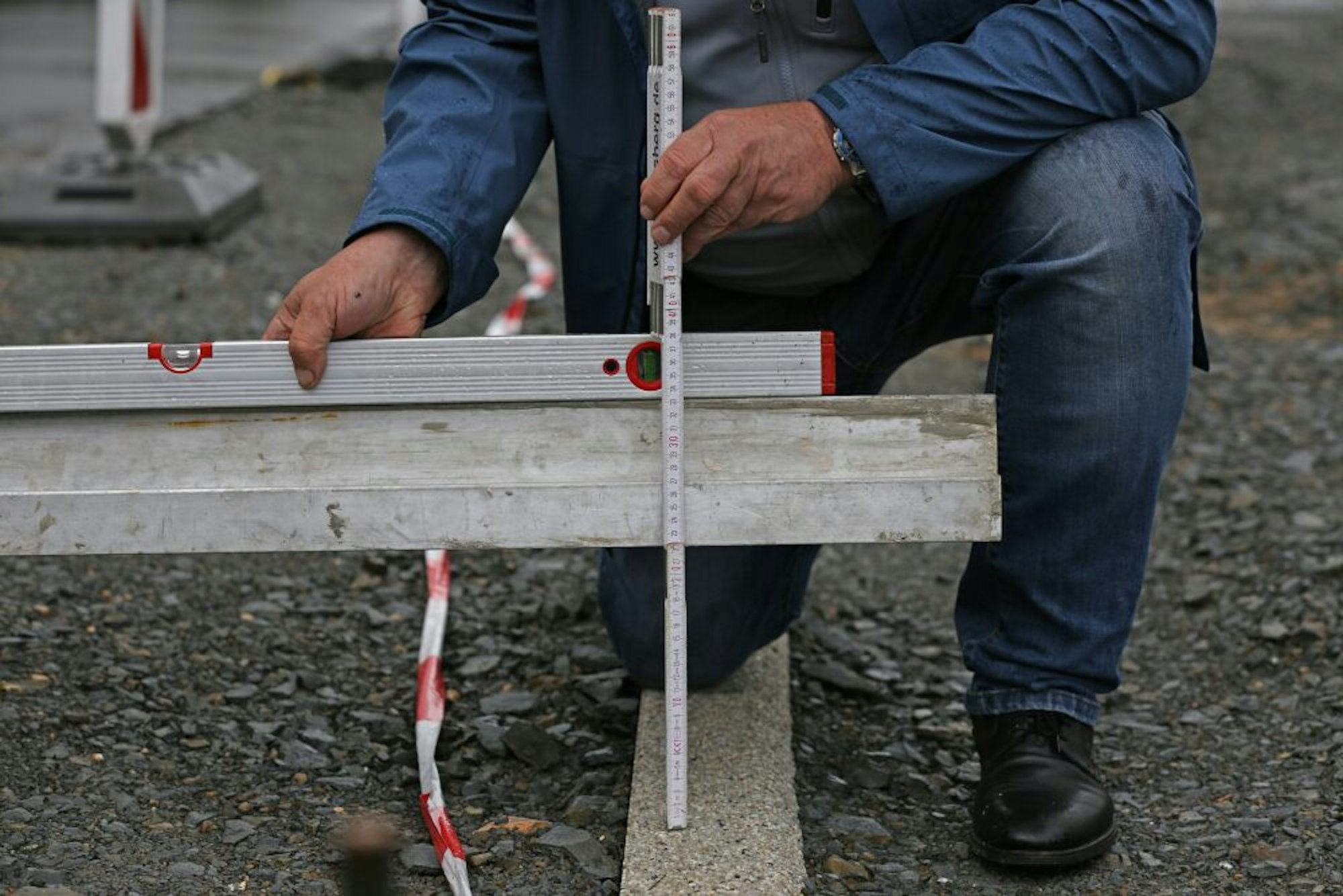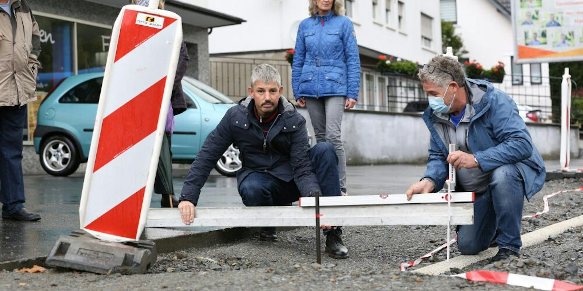 Morsbach – Hier ist es bloß eine Fingerbreite, dort aber sind es fast 20 Zentimeter: Diesmal ist der Stein des Anstoßes kein sprichwörtlicher, sondern ein echter. An der Waldbröler Straße zücken Tobias Kappenstein und Lothar Schuh den Zollstock und legen die Wasserwaage an: „Zwischen unserem Grundstück und dem neuen Randstein klafft ein ordentliches Gefälle“, sagt Kappenstein, der in der Ortsgemeinde Friesenhagen selbst ein Unternehmen für Tiefbau führt.