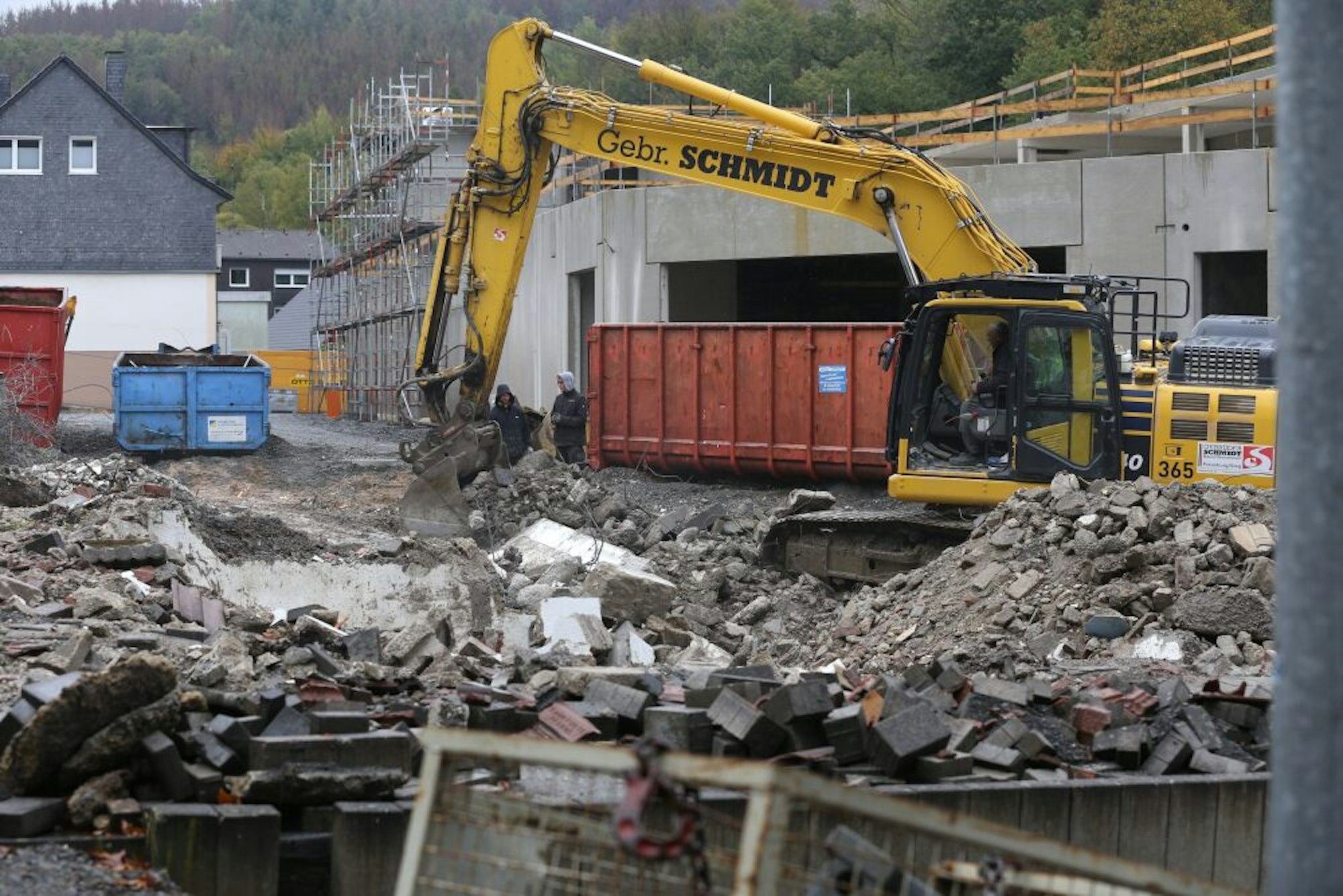 Gegenüber wird zurzeit das Morsbacher Fachmarktzentrum gebaut.