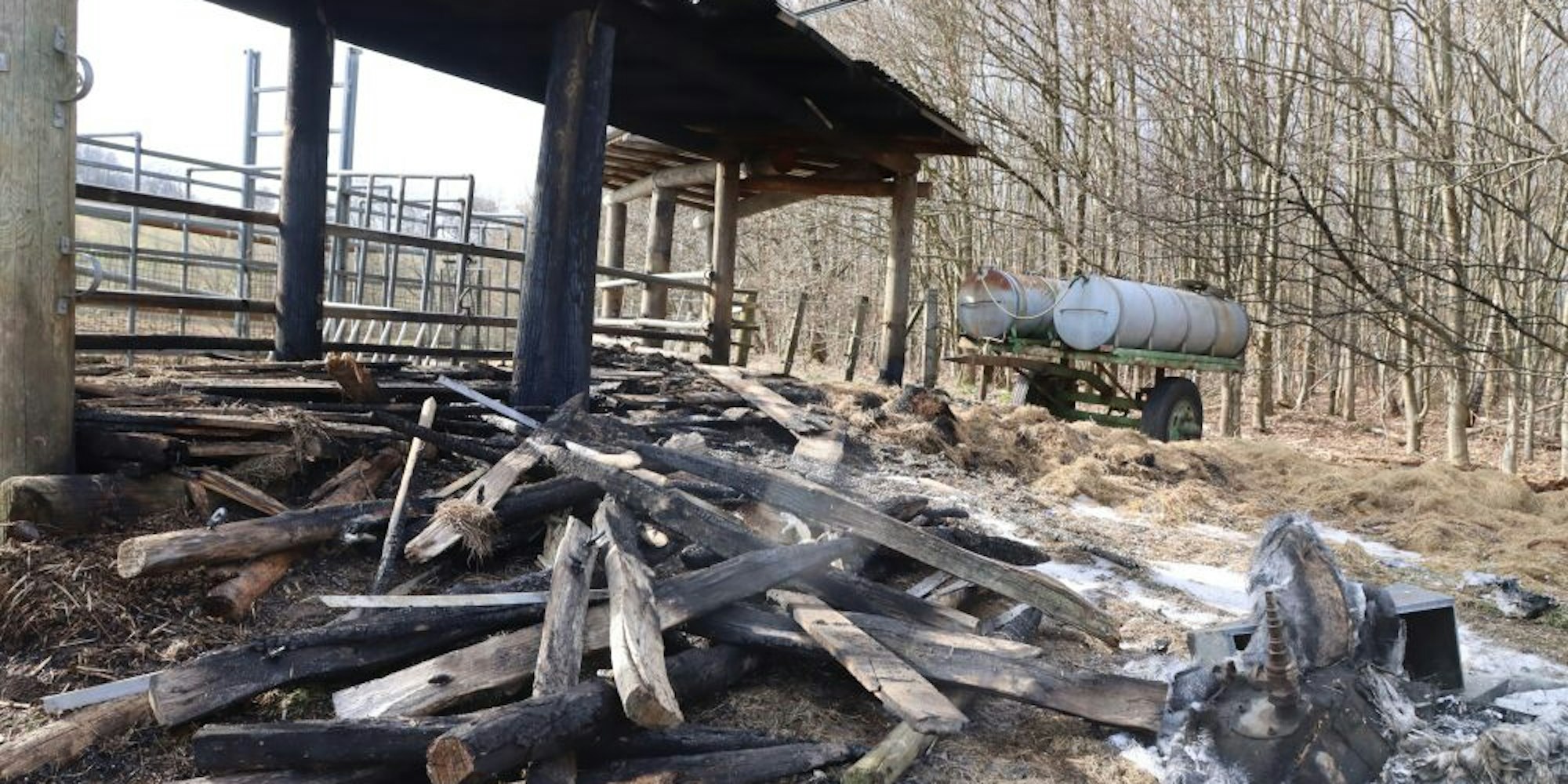 Der Unterstand wurde beim Brand schwer beschädigt.