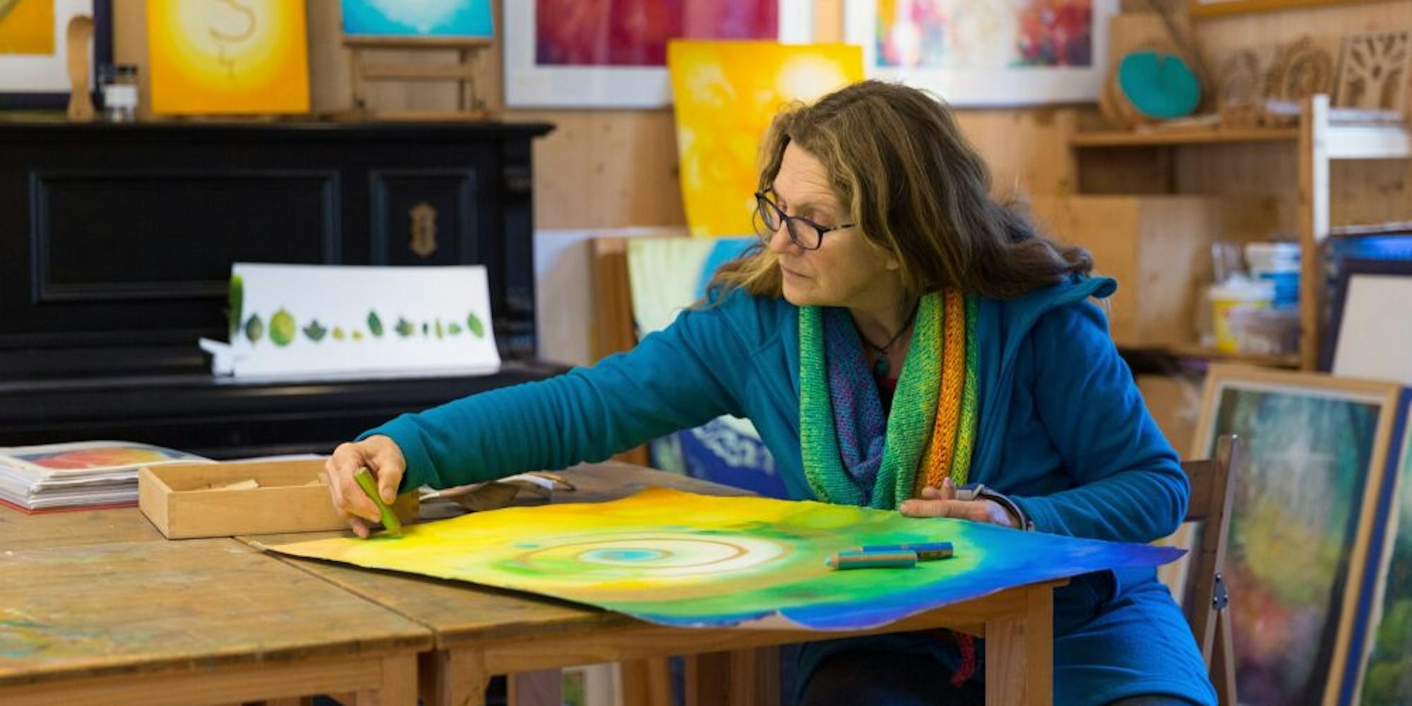 Mit Farbe gegen die graue Tristesse: Christiane Stochus-Schumann ließ sich in ihrem Atelier über die Schulter gucken.