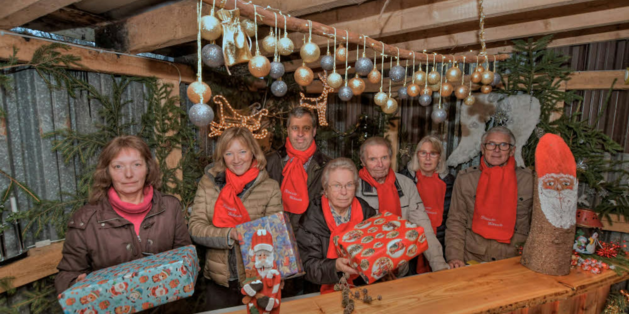 Urig ist sie also geworden, die Glühwein-Scheune. Viel Holz, nicht nur am Tresen, sondern auch als Rindenmulch auf dem Boden – Spenden eines Sägewerks. Einen Kühlschrank gibt es ebenso wie den obligatorischen Glühweinkessel. „Es möchte ja nicht jeder Glühwein trinken“, ahnt Sauren. Und für Kinder gebe es selbstverständlich Limo. Dafür nehmen die Römer kleines Geld, schließlich wollen sie wetterfeste Kerzen verteilen, und die seien echt teuer. Das Grundstück unter dem Häuschen darf der Verein gratis nutzen. Aber nicht nur den Schuppen hat die Gemeinschaft entrümpelt und salonfein gemacht, auch die Kapelle hat sie sich vorgenommen. „Der Hahn ist auf die Turmspitze zurückgekehrt“, sagt Christiane Sauren und zeigt nach oben. Ein Sturm hatte die Wetterfahne zu Boden geschickt. In der Kapelle steht eine runderneuerte Krippe, allein die Steinwände haben Ehemann Stefan und Nachbar Franz Giesen stehen gelassen. „Alles andere war viel Feinarbeit“, verrät Giesen. Macht man das Licht in der Krippe an, erhellt es fast den ganzen Raum.