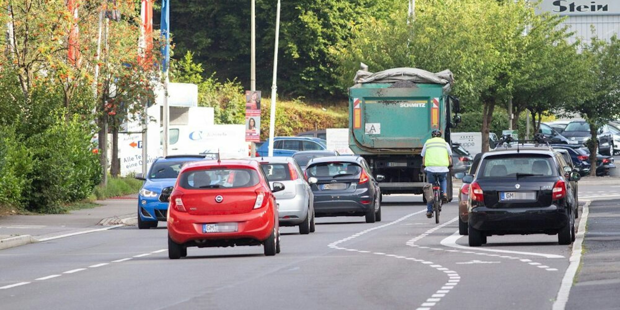 Selbst auf den markierten Fahrradstreifen ist das Radeln entlang viel befahrener Hauptstraßen manchmal Nervensache. Der ADFC propagiert deshalb die Trennung von Auto- und Fahrradverkehr. Die Kreisstadt in Gummersbach will er dafür gewinnen.