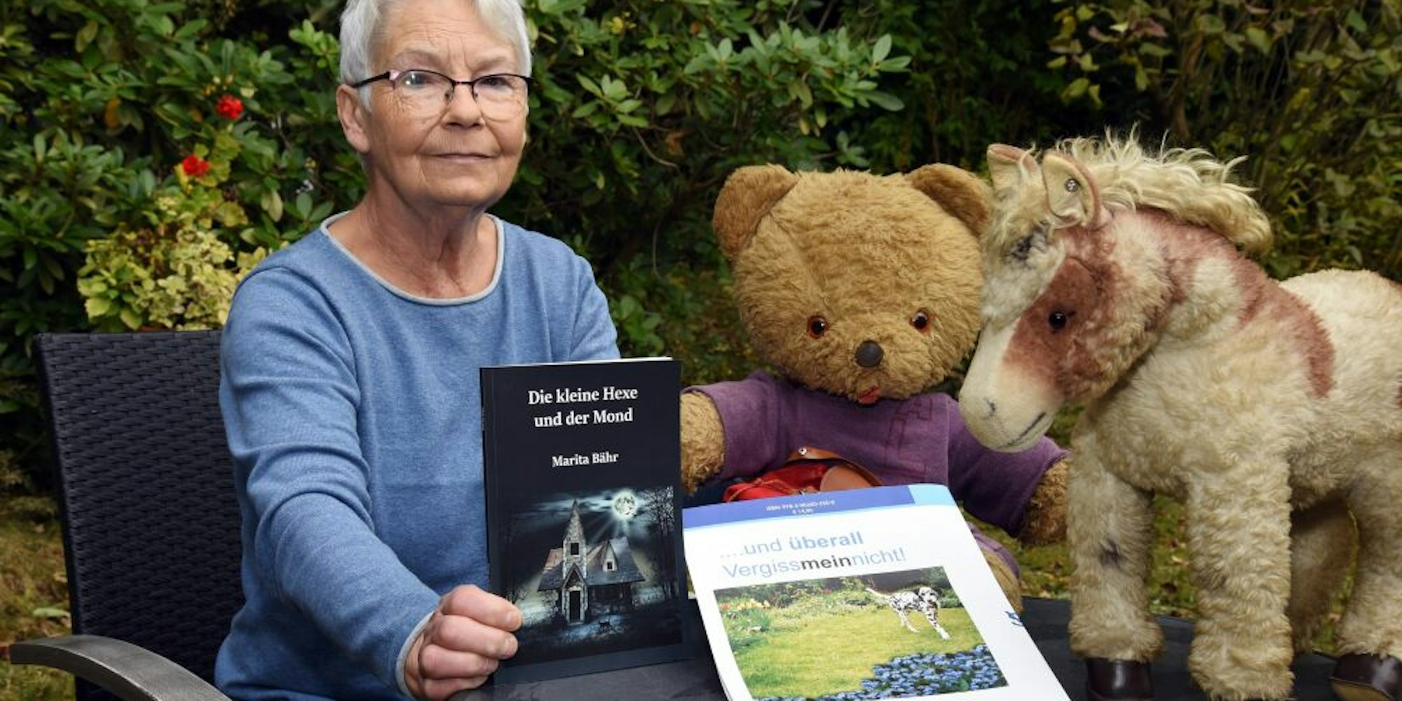 Auch das erste Buch der Berkenrotherin hat eine etwas längere Vorgeschichte. Denn „... und überall Vergissmeinnicht!“ entstand eigentlich schon 1998. Als es Marita Bährs Ehemann Bernd vor einigen Monaten wieder in die Hände fiel, regte er sogleich an, dass auch dieses Buch endlich an die Öffentlichkeit gehöre und der Schlosser-Verlag griff zu. Viele autobiografische Züge machen die Geschichte um Jens und seinen Teddy, um das Plüschpferd Jack und den Hund Klecks zu etwas Besonderem.
