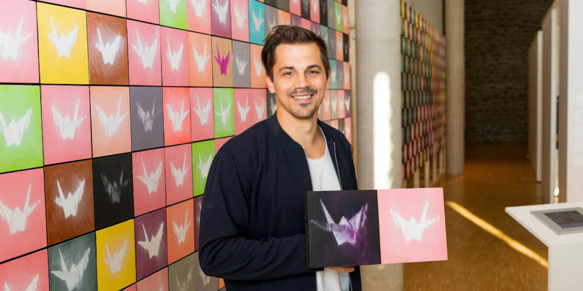 David Uessem hat 1000 Kraniche gemalt. Das imposante Kunstwerk misst 21 Meter und ist noch bis Februar auf Schloss Homburg zu sehen.
