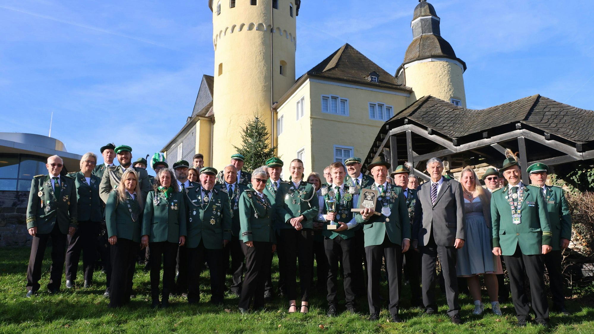 Lange TraditionOberbergs Schützen unter dem Schlossturm geehrt