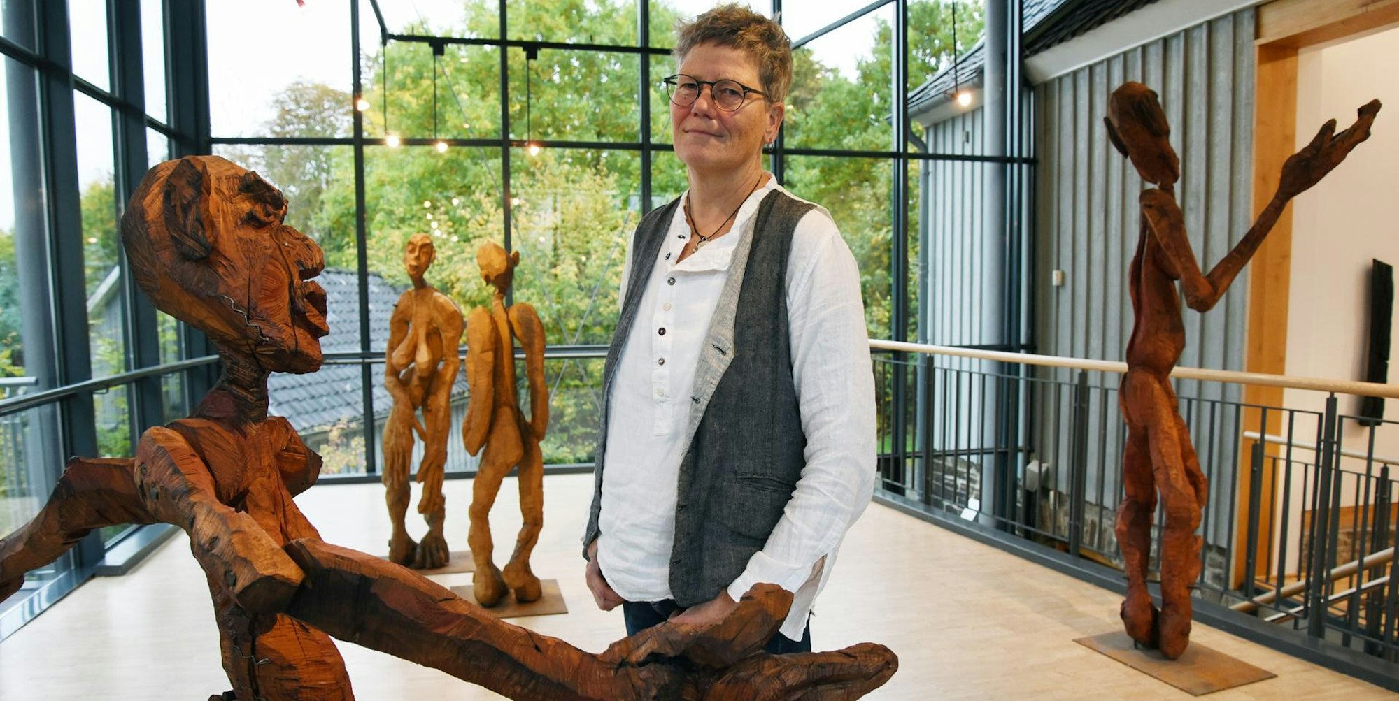 Sie sind auf das Wesentliche reduziert, das Sinnliche: Sehen, Fühlen, Hören, Kommunikation durch Körperhaltung und Gestik. Einzigartige Holzskulpturen der Künstlerin Rendel Freude sind hier beschrieben – Arbeiten aus der bevorstehenden Ausstellung des Kunstvereins Nümbrecht im Haus der Kunst. Und die entstehen nicht etwa mit einem Beitel, sondern mit einer Kettensäge.