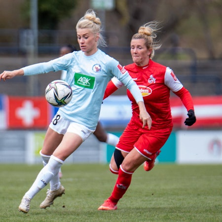 Vor dem Spiel habe sie Anspannung und Aufregung verspürt. „Ich habe viele Nachrichten bekommen und wir sind es nicht gewöhnt, dass sich schon beim Aufwärmen die Ränge füllen.“ Unter den Zuschauern waren auch ihre Familie und einige Freunde. Später nahm sich die Nümbrechterin im Stadion viel Zeit für ihren „Fanclub“. „Wir haben uns über die Bande begrüßt und gequatscht, das hat mich gefreut“, sagt Barth, die bei der Abschlussfeier abends in Köln mit dem Club und den Teamkolleginnen auf eine erfolgreiche Saison angestoßen hat.