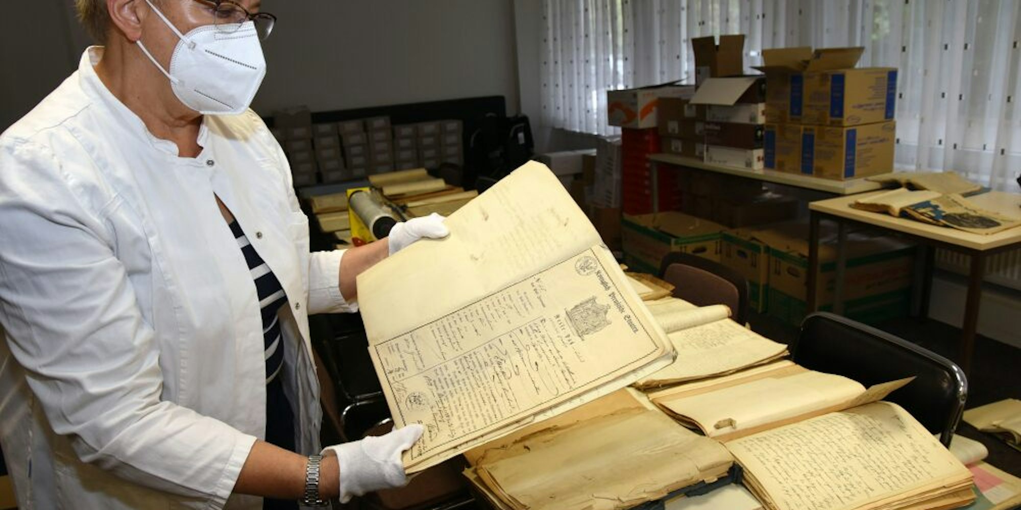 Und tatsächlich wurden durch das Hochwasser auch ältere, bis zu 200 Jahre alte Schätzchen in Mitleidenschaft gezogen. Um so größer die Erleichterung bei Ludwig-Weber, dass kein einziges Dokument verloren gegangen ist.