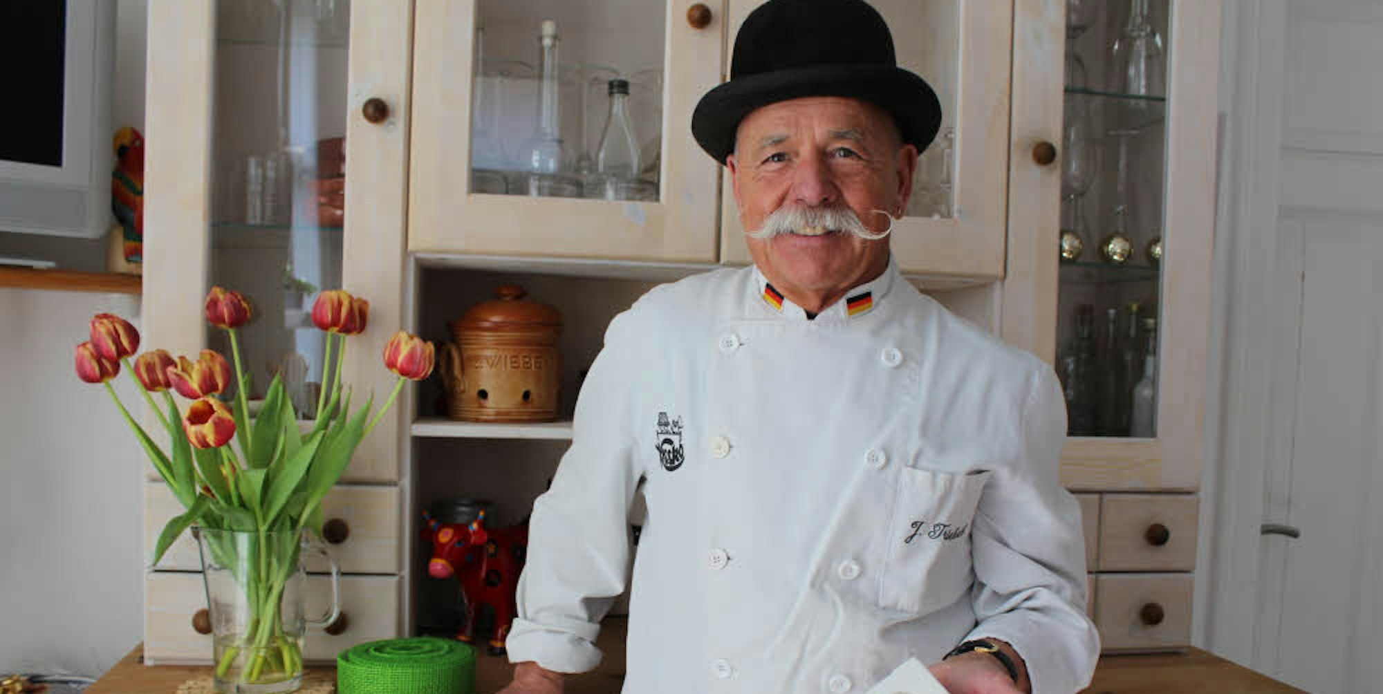 Der Konditormeister übt seinen Beruf voller Leidenschaft aus und denkt selbst mit 73 Jahren noch lange nicht ans Aufhören. „Sie können mich nachts wecken und ich fange an zu arbeiten“, sagt der drahtige Senior lachend – denn ansehen tut man ihm den Umgang mit den vielen Süßigkeiten nicht. Das ist seinem zweiten Hobby geschuldet, das er 35 Jahre lang ausübte: Judo. 20 Jahre lang führte er nebenher eine Judoschule in Waldbröl. Das könne er zwar wegen seiner Gelenke nicht mehr, aber sportlich unterwegs sei er immer noch. Mal eben mit dem Fahrrad nach Köln und zurück? Für ihn kein Ding!
