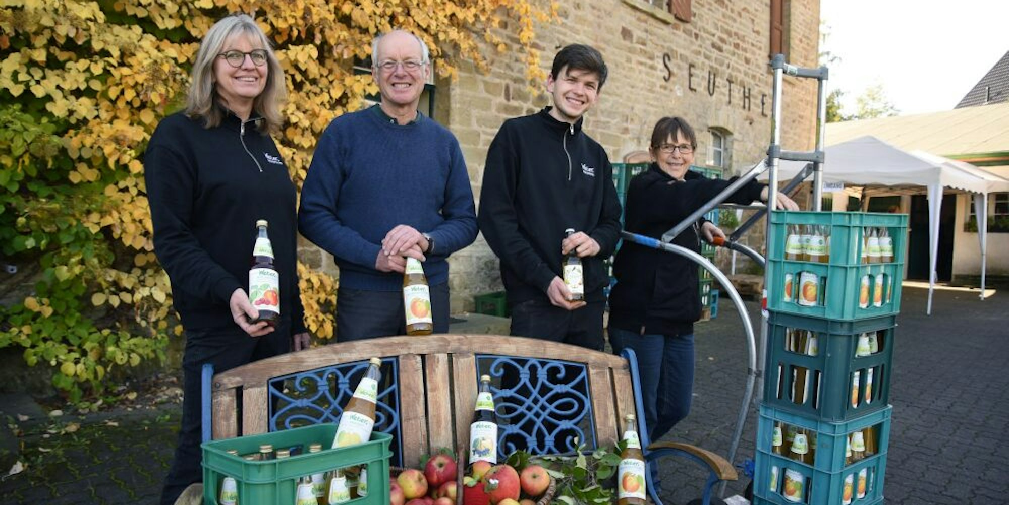 Die Fruchtsaftkelterei Weber ist seit 1936 ein reiner Familienbetrieb, Ruben ist der Sohn von Ira und Klaus Weber, die den Laden groß gemacht haben. „Bei uns ist der Generationswechsel vollzogen“, sagt Klaus Weber, seit dem 1. August ist Ruben Weber der Chef. Doch anpacken tun (und müssen) sie alle, auch Klaus Webers Schwester Britta, die den Kunden die Saftkästen mit der Sackkarre bis zur Autotür bringt und alleine für diese schwere Arbeit schon Kilometergeld verdient hätte.