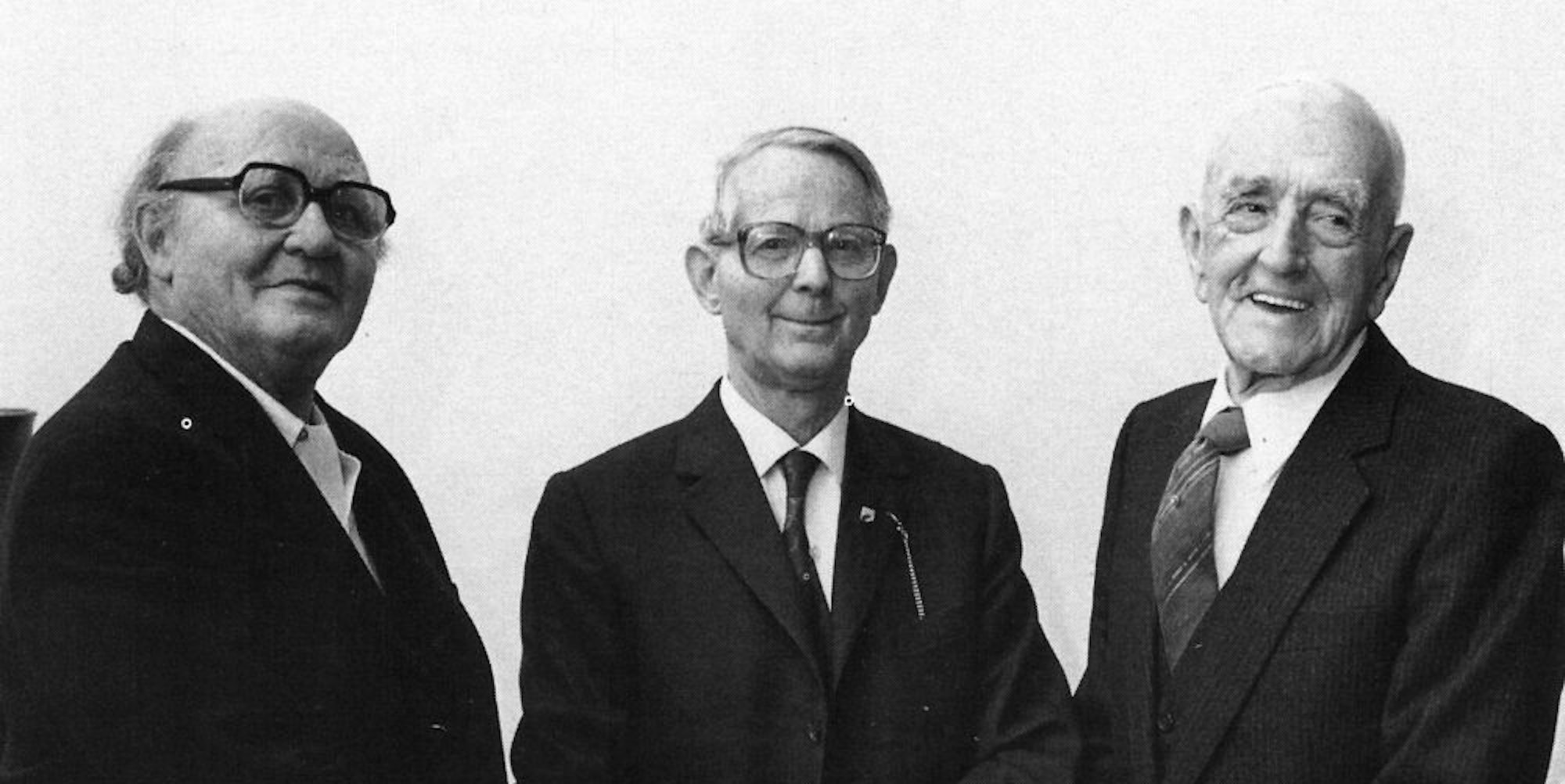 Otto Kaufmann (M.), mit dem Ründerother Künstler Otto Seeligmann (l.) und Ernst Heckmann, Bäcker und im Vorstand der Raiffeisenbank.