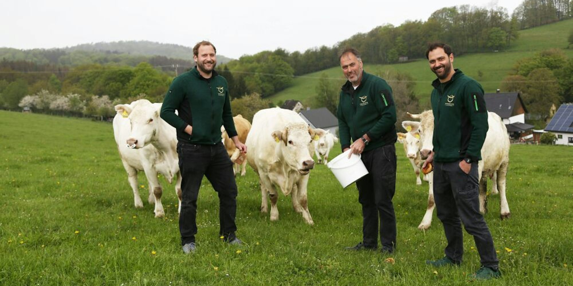 Denn vom Fach ist eigentlich nur Vater Christoph (62). Der hat in Oberwiehl Metzgergeselle gelernt, später aber im Rettungswesen des Oberbergischen Kreises gearbeitet. Im Morsbacher Heimatdorf Niederasbach hat er jedoch immer schon Rinder gehalten und deren Fleisch dann im privaten Umkreis vermarktet. Sohn David ist Feuerwehrmann, hat zuletzt aber auch als Zimmerer gearbeitet, während sein Bruder Sebastian als Sportjournalist geschrieben hat und dem Vater als Ausbildungsleiter in den Rettungsdienst gefolgt ist.