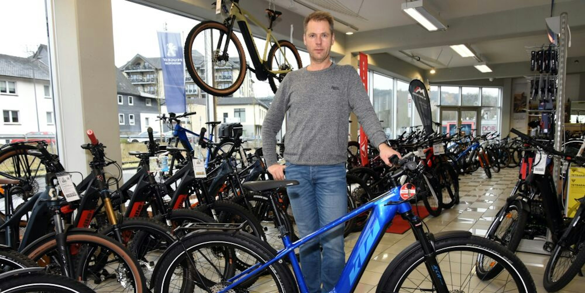 Auch bei Zweirad Klein in Bielstein ist es ruhig. Kunden, die jetzt ein E-Bike abholen, haben es meist schon im Sommer bestellt. „Wir haben zwar immer eine Auswahl da, aber sieben von zehn Kunden haben ein bestimmtes Modell im Sinn“, sagt Thomas Klein,