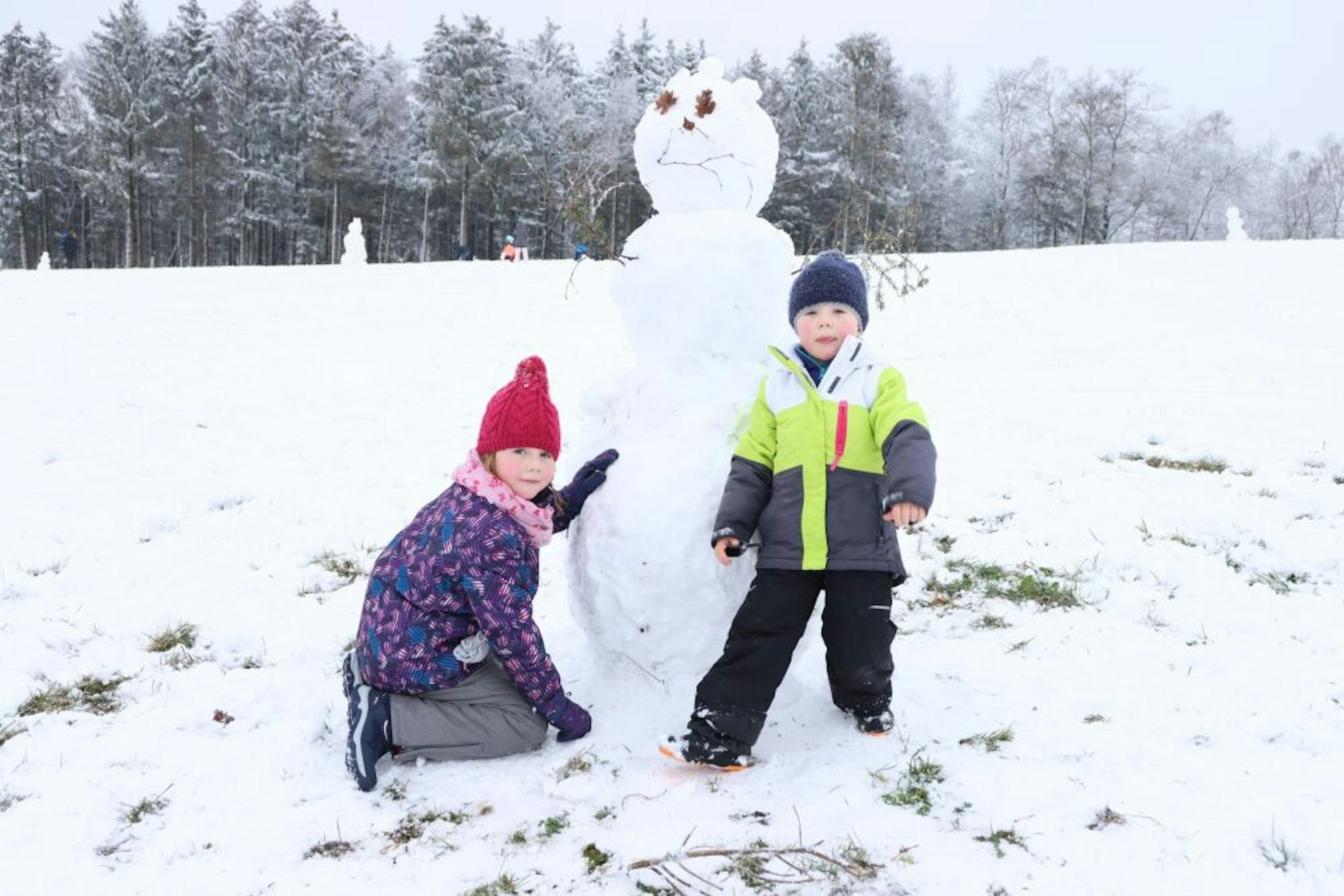 Einen Schneemann bauten Elli (6) und Paul (3) Schmitz aus Lohmar-Wahlscheid.