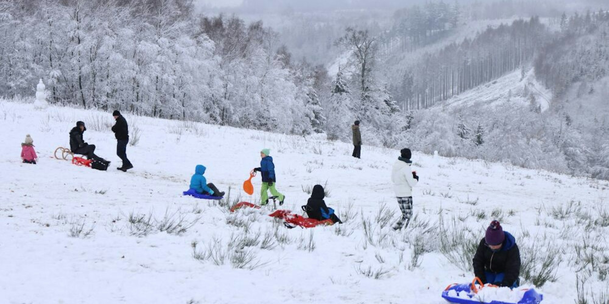 Blockhaus – Knapp zehn Zentimeter Neuschnee hatten schon an Silvester für Hochbetrieb am Blockhaus bei Reichshof-Eckenhagen gesorgt. In der Nacht zu Neujahr kam noch einmal eine dünne Schneedecke hinzu. Hunderte Menschen aus der Region, aber auch viele Siegburger und Kölner vergnügten sich deshalb am ersten Tag des neuen Jahres in der hier so lang ersehnten, weißen Pracht.