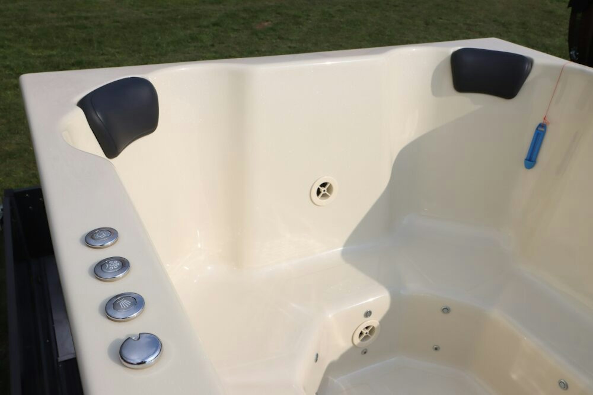 Schön warm wird es auch in dem Whirlpool. Schon nach etwa zwei Stunden sind die 1300 Liter Wasser in der sprudelnden Wanne angenehm temperiert. „Das funktioniert sogar im Winter“, strahlt Janzen. „Es ist einfach super, den Morgenkaffee draußen gemütlich im Pool zu trinken und dabei den Langläufern zuzuschauen.“ Bei Dunkelheit sorgen eingebaute LEDs für ein gemütliches Ambiente.