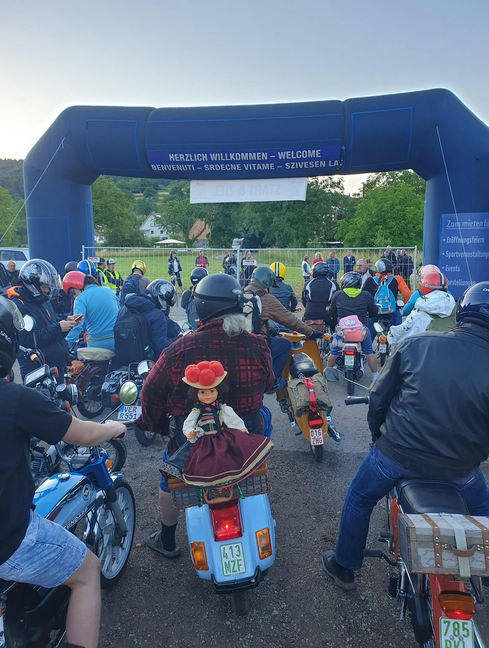 Die erste Gruppe startete um 6 Uhr. 20 Minuten später ging es auch für Koch, Schabon und Haas los, die mit 150 weiteren Mopedfahren in der dritten von insgesamt fünf Gruppen an den Start gingen. Über 700 Teilnehmende hatten sich im Schwarzwald eingefunden. „Da die Nachfrage bei der Anmeldung so groß war, hatten die Veranstalter das Kontingent erhöht“, berichtet Schabon, der sich einige Monate zuvor am Computer um die begehrten Tickets bemüht hatte.