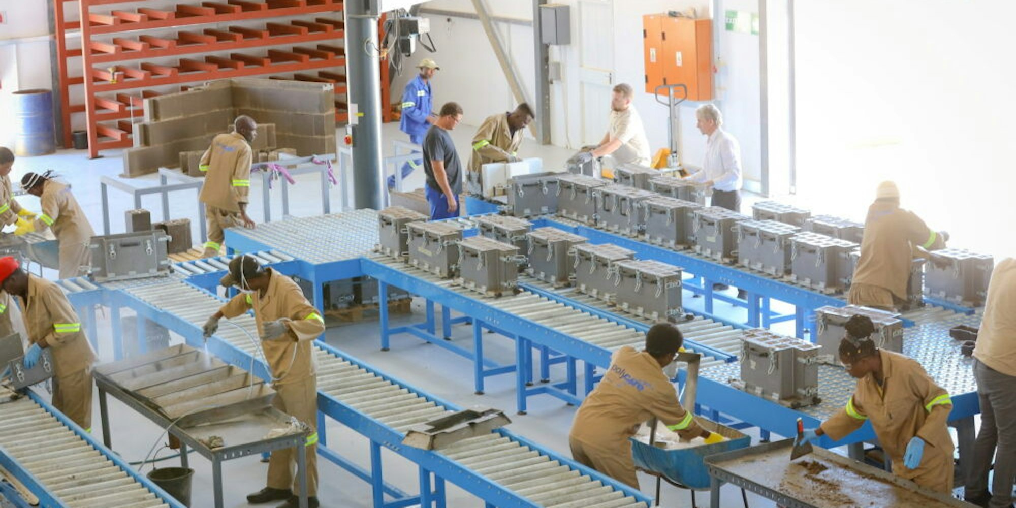 Die Steine, die aus Wüstensand gefertigt werden, sind an das Steckprinzip von Lego angelehnt. Gerade erst ist Dust aus dem afrikanischen Namibia zurückgekehrt, wo die örtliche, 2019 gegründete Polycare-Gesellschaft gerade zwei Schwesterwohnheime baut. Dort ist auch schon eine kleine Siedlung mit zwölf Häusern mit den Steckbausteinen entstanden. Weitere Schwesterfirmen seien in Planung, berichtet Dust: „Die nächste Fabrik soll Ende des Jahres in Kapstadt in Südafrika entstehen.“ Binnen fünf Jahren sollen dann Betriebe etwa in Ghana, Nigeria und auch in Japan dazukommen. 30 Gesellschaften seien angepeilt, berichtet Dust: „Dann werden wir pro Jahr etwa 10.000 Häuser bauen und damit 200.000 Tonnen Kohlendioxid einsparen. Gegenüber der herkömmlichen Bauindustrie verbrauchen wir 60 Prozent weniger CO2.“