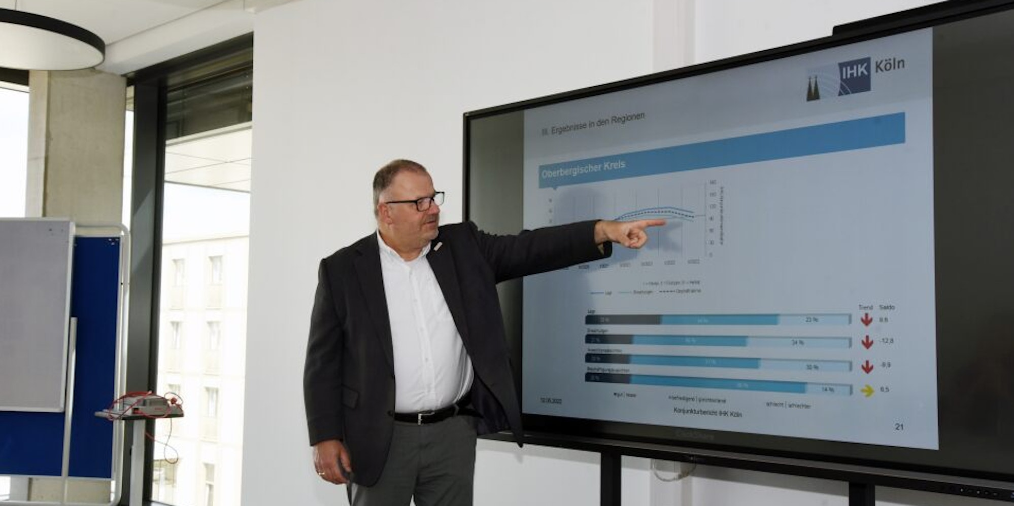 Fallende Kurven, Pfeile nach unten: IHK-Chef Michael Sallmann berichtete von pessimistischer Stimmung bei den Unternehmern.