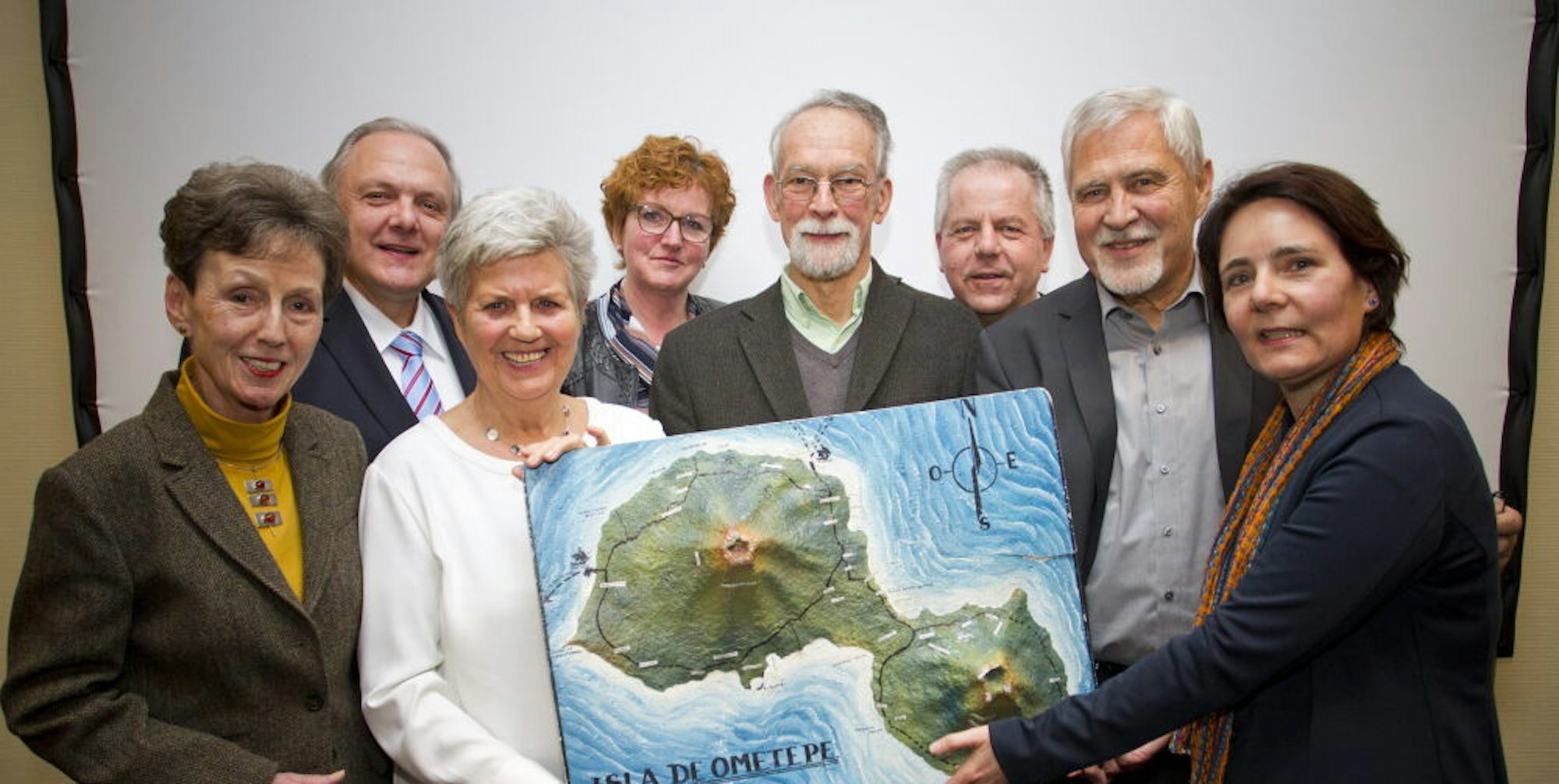 Engagement für die Insel: Monika (3.v.l.) und Michael Höhn (2.v.r.), hier bei einem Neujahrsempfang des Ometepe-Projektes, können sich über eine positive Beurteilung freuen.