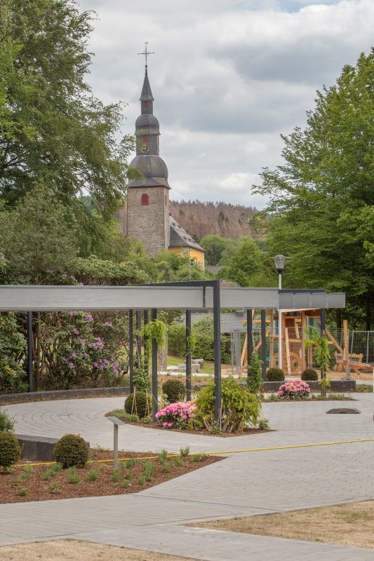 Was noch fehlt sind die Sitzbänke, die Ende dieses Monats geliefert und aufgestellt werden sollen. Zu den weiteren Kleinigkeiten, die noch etwas Zeit brauchen, gehört der Rasen, der da, wo er frisch eingesät ist, noch nicht betreten werden darf. Darauf weisen aber Schilder hin. Auch der Barfußpfad, der in eine Rasenfläche integriert ist, bleibt vorerst eingezäunt und wird erst später freigegeben.