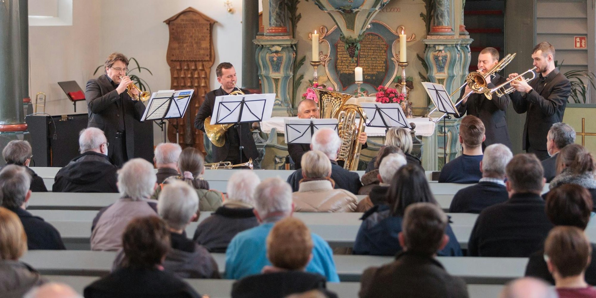 Eckenhagen – „Es ist eine große Ehre, Sie hier zu haben“, begrüßte Hausherr Pfarrer Martin Will die international bekannte Formation. Der ukrainische Professor für Trompete Andriy Ilkiv war mit dem Ensemble Kiev Brass am Sonntagabend in der Eckenhagener Barockkirche zu Gast.