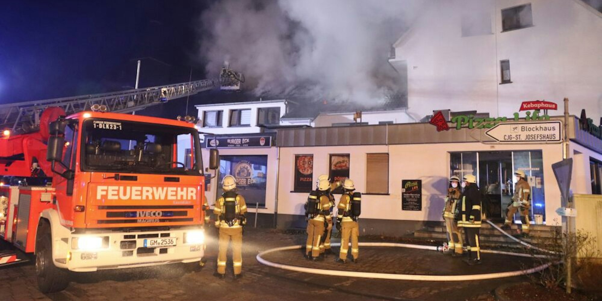 Als die ersten Einsatzkräfte in der Blockhausstraße eintrafen, wurde sofort auf „Feuer 3“ hochalarmiert. Insgesamt waren 65 Feuerwehrleute in dem Einsatz, der sich noch bis in die Nachtstunden erstreckte. Nach rund einer Stunde war der Brand aber bereits unter Kontrolle.
