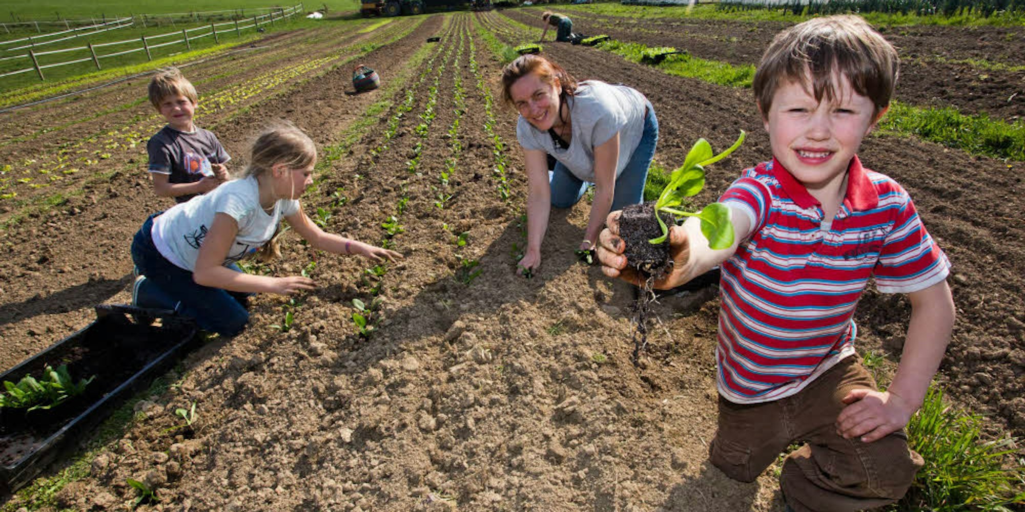„Seht her, daraus wird Spinat, und ich mag ihn“, könnte Jonna (5) rufen, der mit Laila (9), Silas (7) und Mama Dr. Cora Pauly gerade die Setzlinge in die Erde bringt.