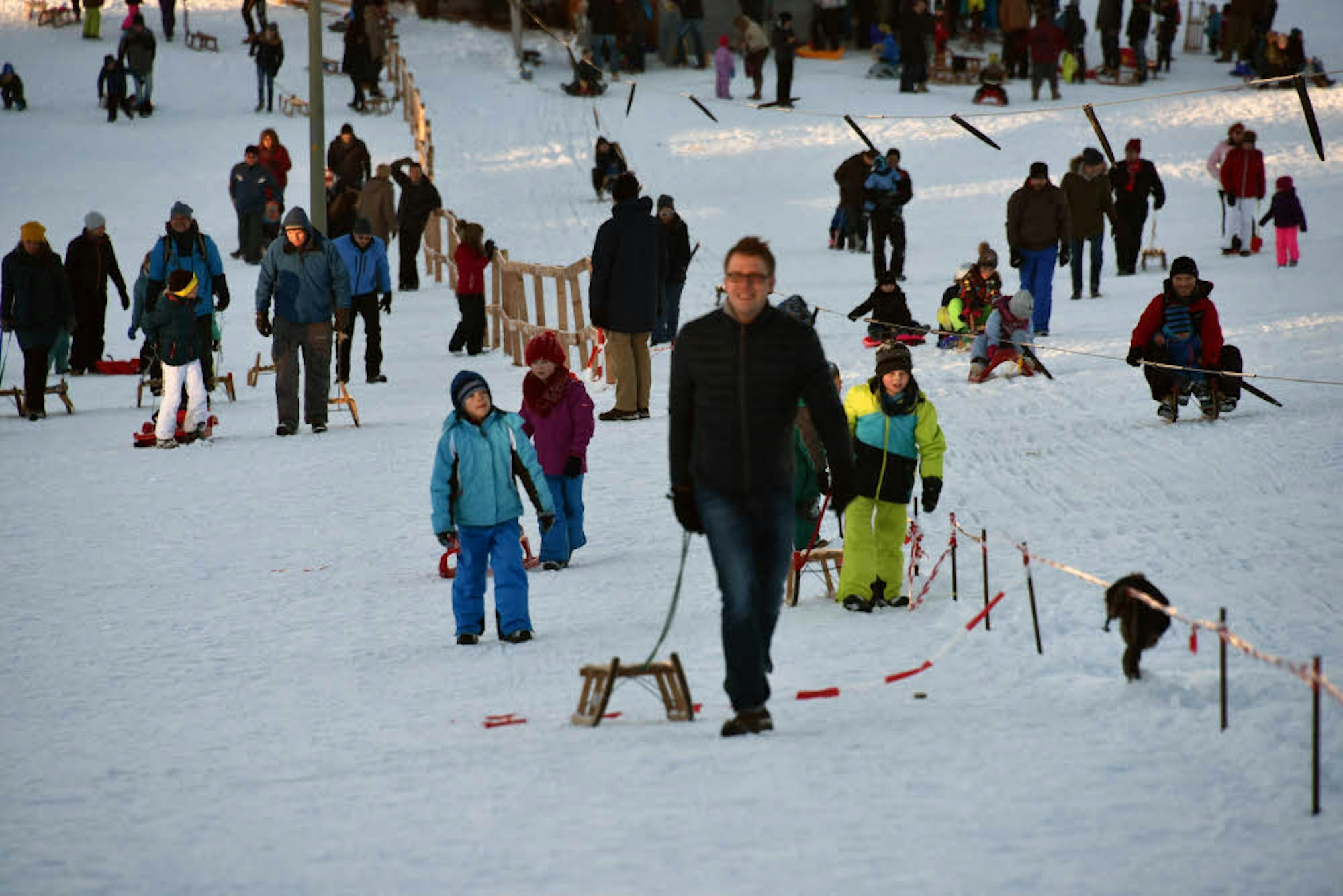 Guido Weström ist aus dem Belgischen Viertel angereist und hat den Tipp von einem Nachbarn bekommen. Er lobt die gute Beschilderung, die ihn und seine Familie von der Autobahn direkt an den Rodelhang geführt hat. Ehefrau Corinna gefällt, dass der Wintersportbetrieb hier noch nicht übermäßig professionell und kommerziell wirkt, sondern irgendwie handgestrickt: „Die Jungs vom Lift sind echt nett.“