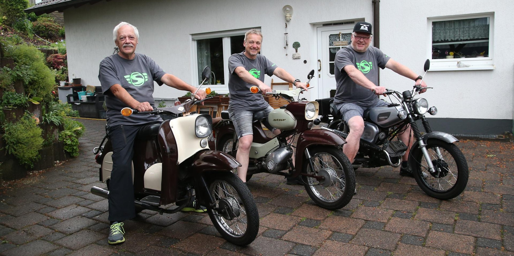 Startklar: Manfred Haas, Michael Schabon und Michael Koch nehmen mit ihren Simson-Mopeds am Schwarzwaldmarathon teil.