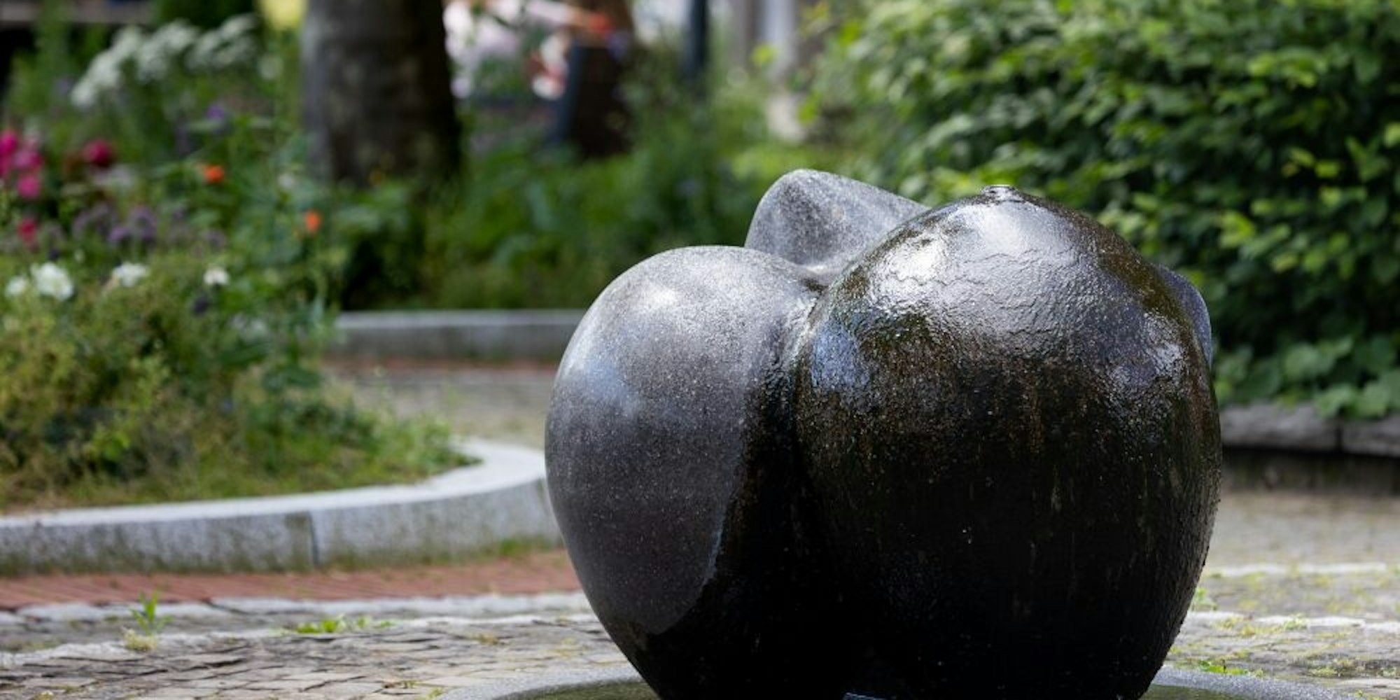 Auf dem Platz in der närrischen Gemeinde steht dieser Brunnen, gestiftet von der benachbarten Volksbank.