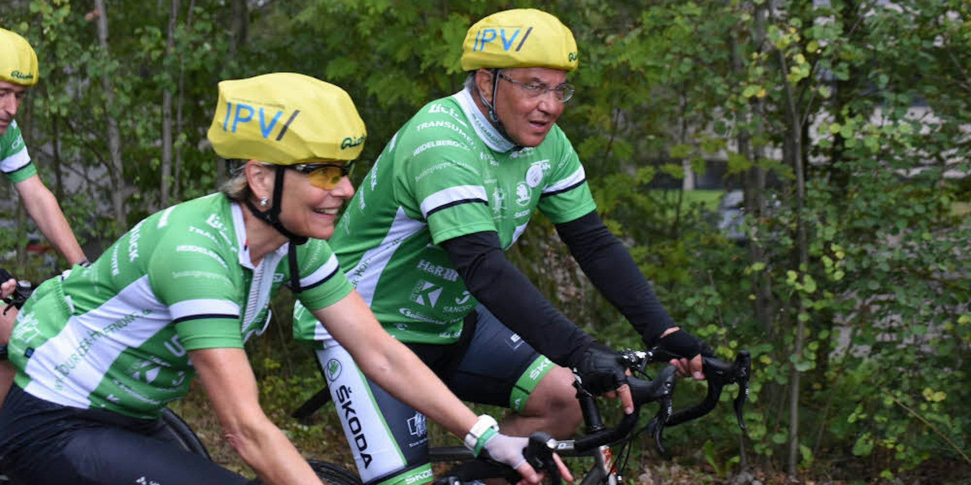 In Oberberg zieht Tourgründer Gerhard Becker eine allererste Bilanz für 2019: Rund 95.000 Euro seien gleich am ersten Fahrtag hinzugekommen – auch dank der Schwalbe-Inhaberfamilie um Frank Bohle, die den Radlern 15.000 Euro mit auf den Weg gibt, bei der Firma Sarstedt haben die Mitarbeiter 13.000 Euro gesammelt. „Eine solche Gemeinschaft, die trägt wirklich jeden“, schwärmt die frühere Biathletin Petra Behle und meint damit ebenso den sportlichen Zusammenhalt im Fahrradsattel. Denn was die Fitness angehe, da sei die Gruppe doch stark gemischt.