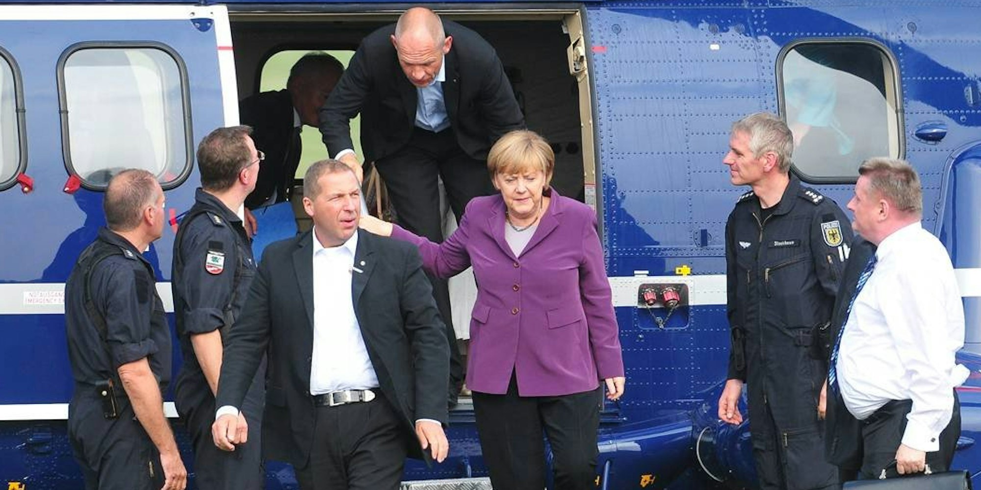 Im Geleit von CDU-Generalsekretär Hermann Gröhe und vier Sicherheitsleuten steigt die CDU-Vorsitzende in eine Limousine, die in Richtung Olpe davonfährt. Dort hat Merkel einen Wahlkampfauftritt. Am Abend hebt der Helikopter wieder mit der Regierungschefin vom Dümpel ab. (ag)
