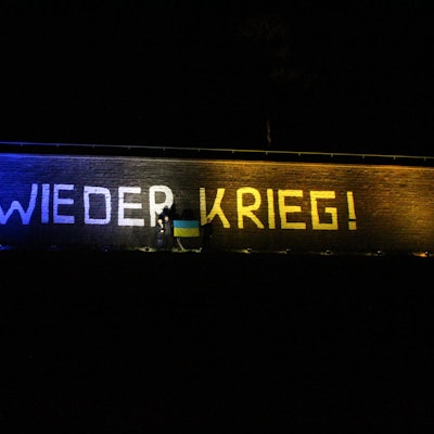 Auch an der Gesamtschule Marienheide gab es am Mittwoch Aktionen gegen den Krieg der Solidarität mit der Ukraine. Viele Schüler und Lehrer waren in Kleidung in den Farben der Ukraine in den Unterricht gekommen und stellten sich zu einer blau-gelben Flagge auf. Auch hier war ein riesiges Peace-Zeichen zu sehen. (ms)