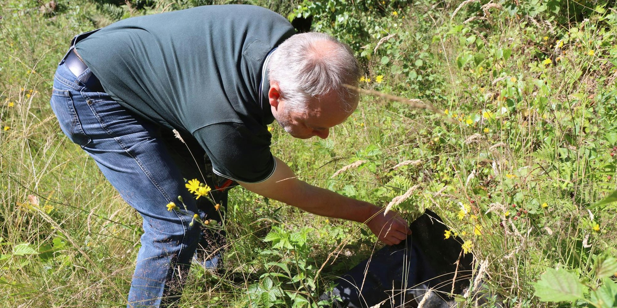 Immer hat er bei seinen Besuchen eine Tüte dabei, um eventuellen Müll aufzusammeln. Dieses Mal bleibt die Tüte fast leer, ein gutes Zeichen.