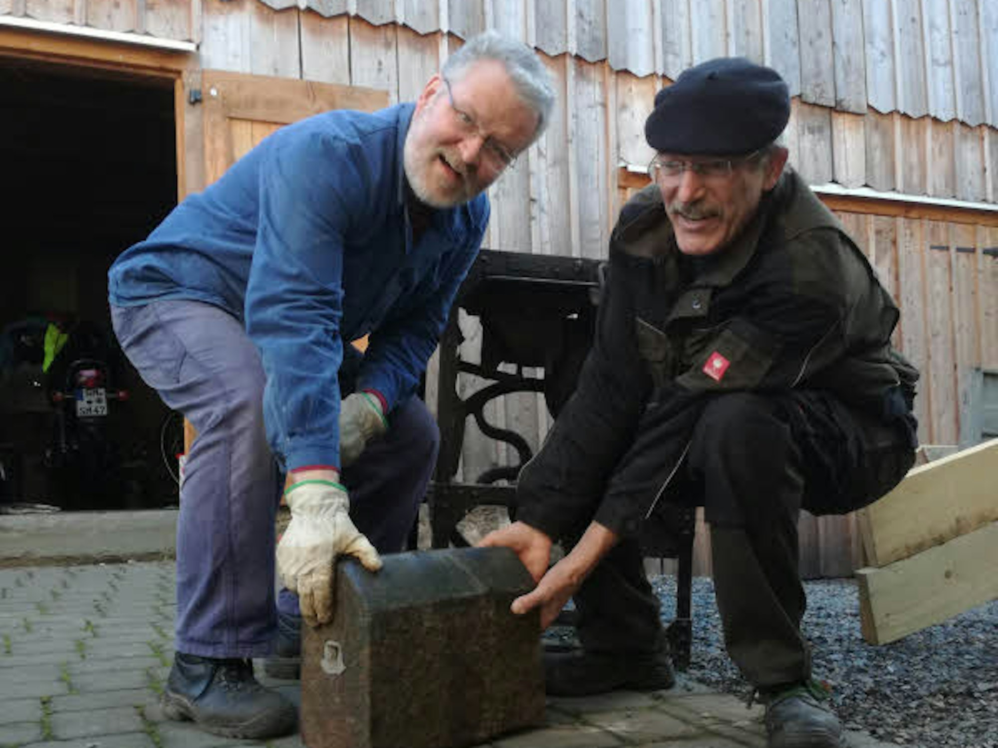 Gute Freunde packen gemeinsam an, auch wenn Meinhard Spaunhorst (r.) und Martin Hartung sich noch nicht einigen können, wie schwer das Schätzchen aus der Hammermühle ist.