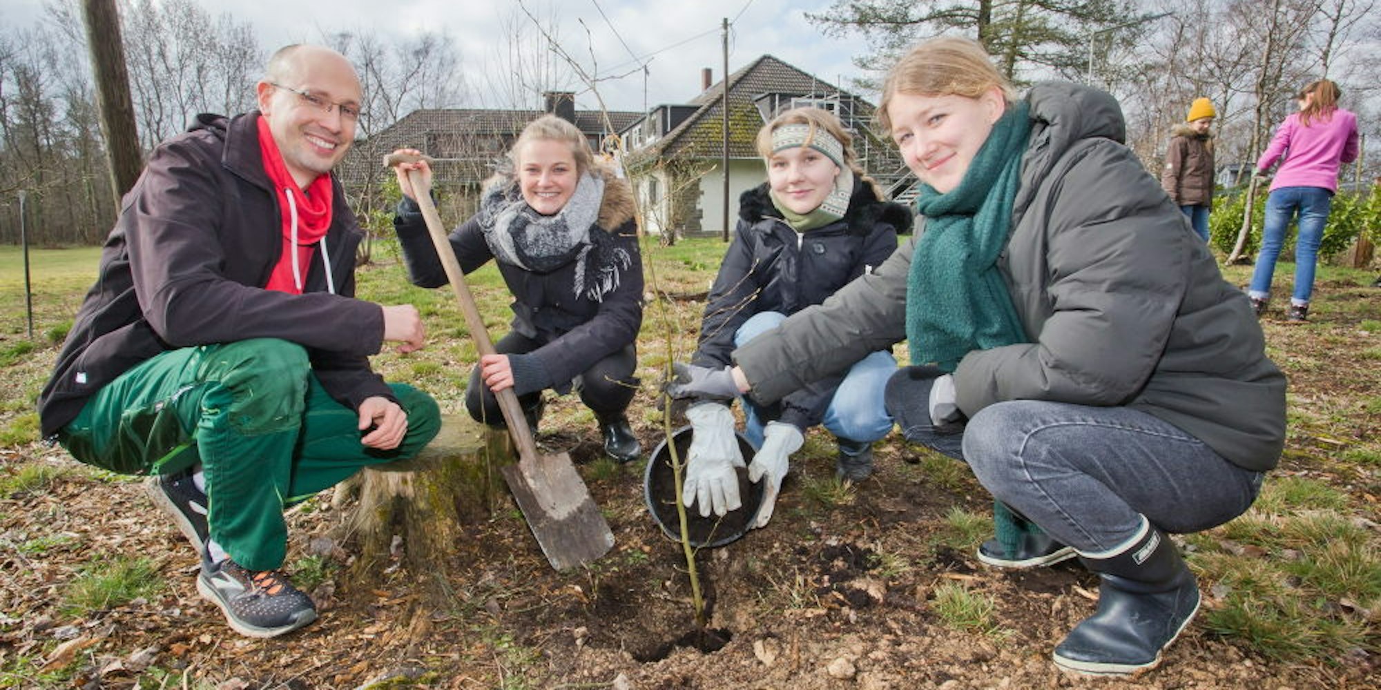 Waldbröl – Sie wollten nicht nur auf die Straße gehen und für ein besseres Klima demonstrieren. Sie wollten etwas tun. Und jetzt haben Leonie, Bette und Anna Schaufel und Spaten in der Hand und vor sich ein Loch im Boden: Da muss sie rein, die junge Hainbuche. „Bäume for Future“ ist das Motto an diesem Tag.