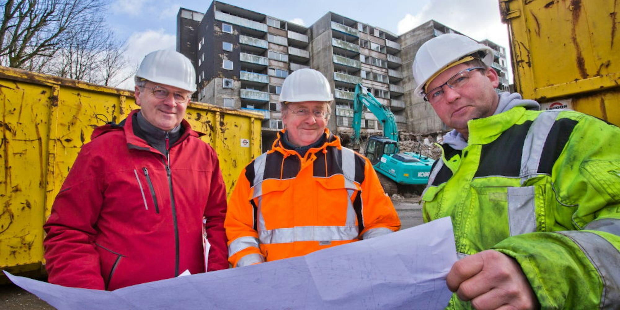 Die Drei vom Bau: Gebäudemanager Christoph Peikert (v.l.), Bauleiter Thomas Sachs und Polier Hartmut Douwes haben alles im Blick.