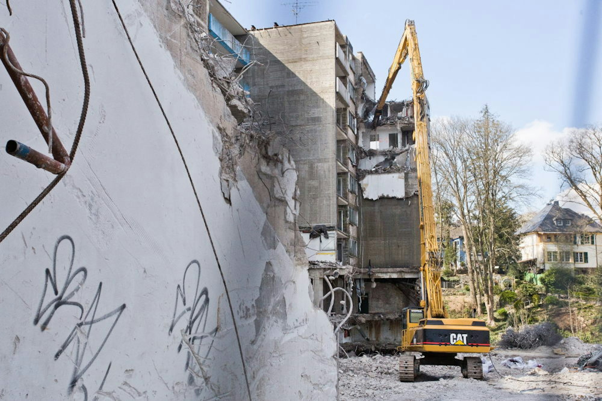 Zurzeit frisst sich die Abbruchschere durch das siebte Obergeschoss des Waldbröler Merkur-Komplexes.