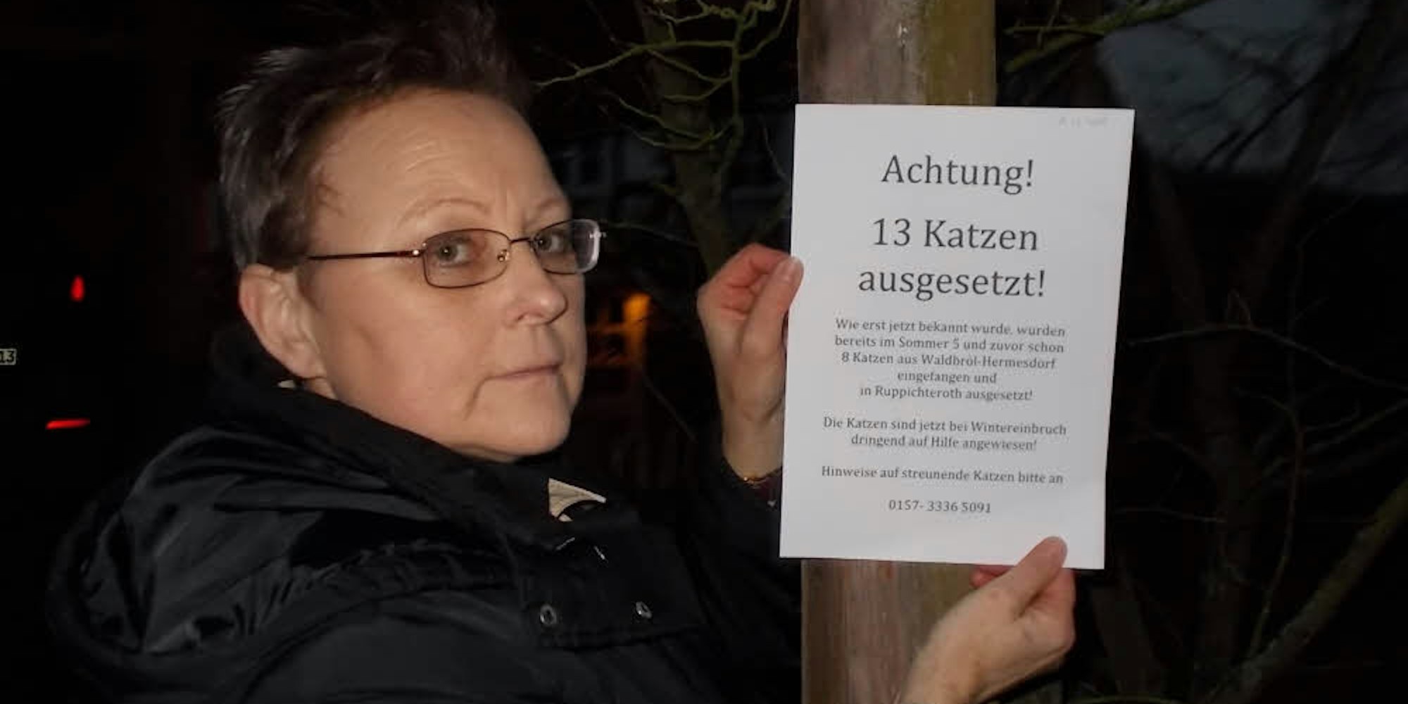 Mit Flugblättern sucht Petra Diederich zwischen Stein, Ifang und Velken nach ausgesetzten Katzen.
