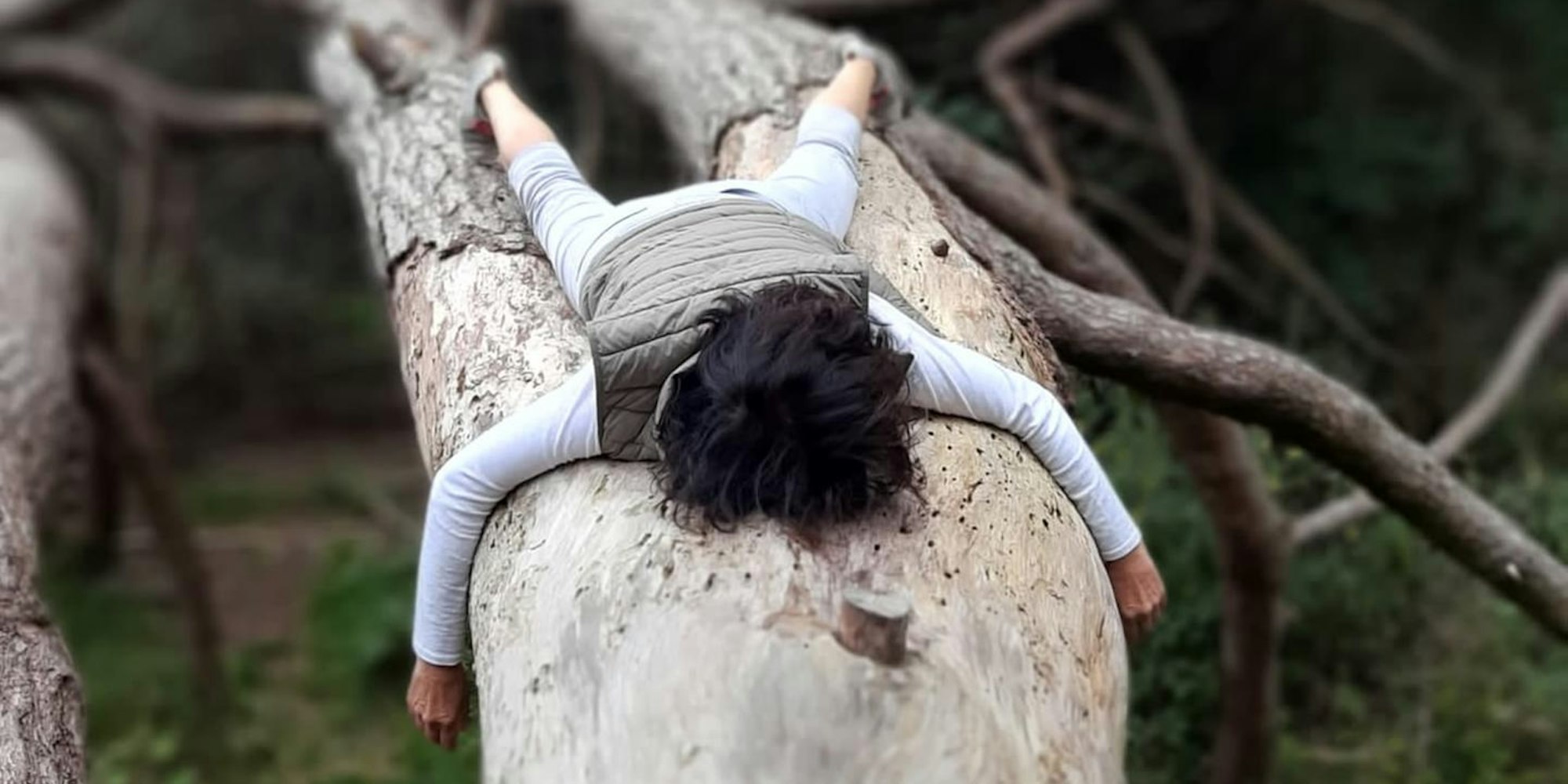 Auf dem Bild, das in Kooperation mit Martina Albrechts Freundin Marion Daub entstand, liegt die 56-Jährige auf einem Baumstamm. Ein mystischer Baum, den die Gruppe von Freundinnen bei einer Radtour auf der niederländischen Nordseeinsel Texel entdeckte. „Er strahlte eine unglaubliche Kraft aus, die auch spürbar war, als ich ihn berührte“, erinnert sich Martina Albrecht und erzählt, dass sie eigentlich schon vorbeigefahren waren und dann doch mit ihren Fahrrädern umdrehten, um sich den Baum näher zu betrachten – und schließlich auch für ein Foto in Szene zu setzen.