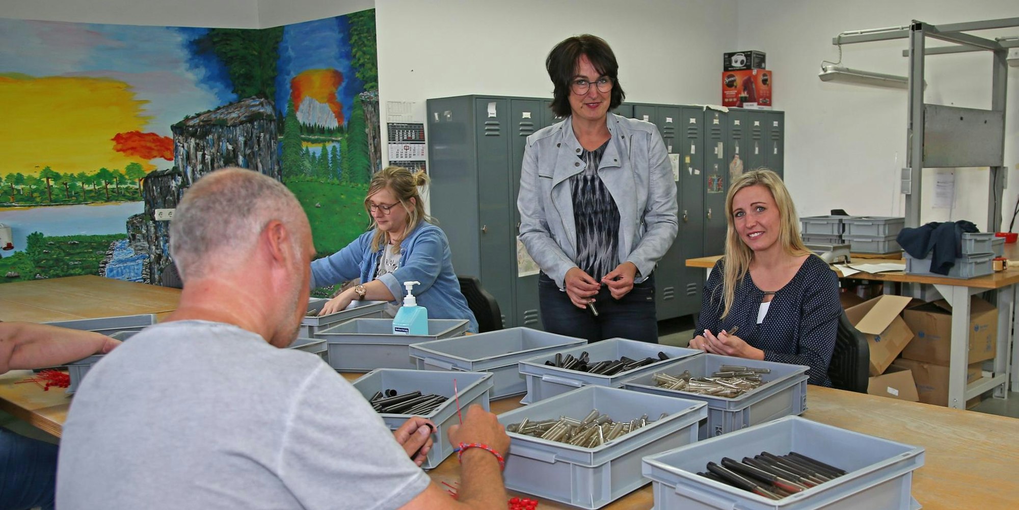 „Die enge Begleitung im täglichen Arbeitsleben, der feste Rhythmus, eben stabile Strukturen und nicht zuletzt die sozialen Kontakte sind für Menschen mit einer psychischen Beeinträchtigung so wichtig“, betont Werkstattleiterin Mertes. Sie blickt auf harte Monate zurück, als sie und ihre neun Kolleginnen und Kolleginnen den in Waldbröl Beschäftigten die Arbeit an die Haustür brachten, ihnen Aufträge für die Heimarbeit erteilten oder ihnen Lesestoff für die Fortbildung zustellten.