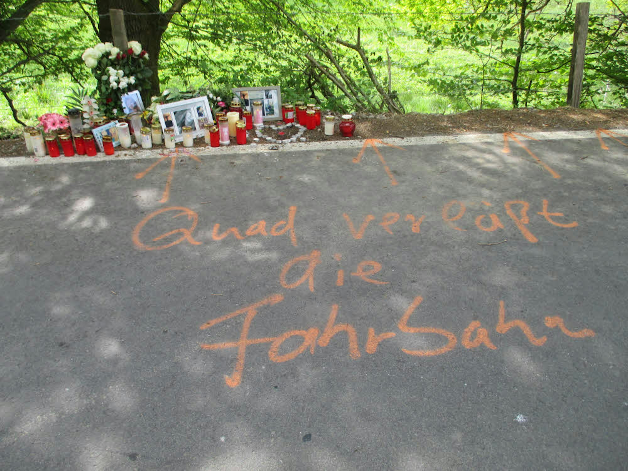 Blumen, Bilder und Lichter an der Unfallstelle im Pochetal sind Ausdruck von Trauer und Fassungslosigkeit.