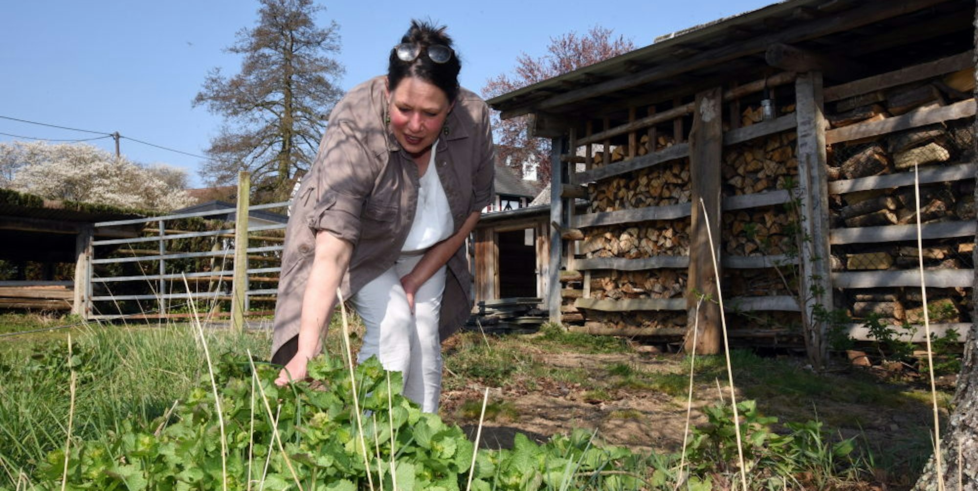 Geilenkausen – Nur ein paar Schritte entfernt sich Astrid Saubert von ihrem Kräutercafé, da bleibt sie auch schon wieder stehen. Im Schatten eines Baumes wächst Knoblauchsrauke. Die Kräuterpädagogin aus Waldbröl-Geilenkausen pflückt ein Blatt, riecht dran und erklärt, dass diese Pflanze intensiv nach Knoblauch riecht und schmeckt, dank des enthaltenen Senföls antiviral wirkt und roh in Salat oder mit Frischkäse genossen werden kann.