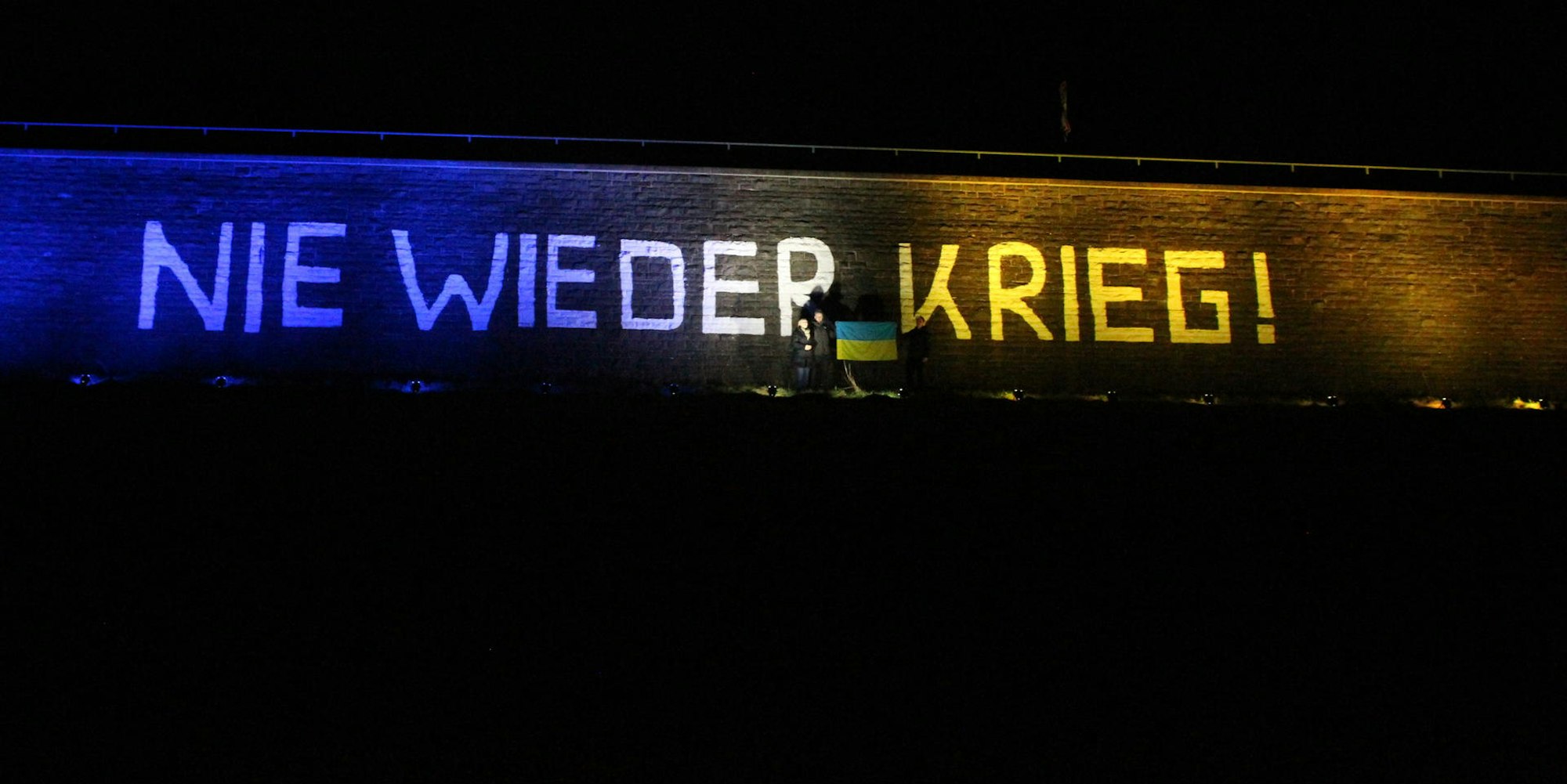 In Waldbröl leuchtete die Friedensmauer in den Farben der Ukraine.
