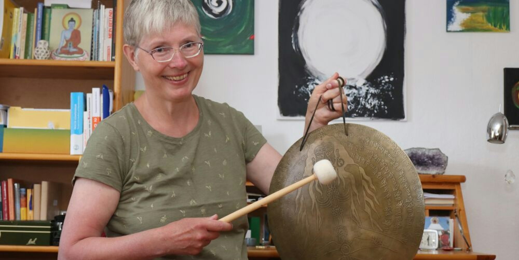 Nach ihrem Musikstudium in Köln habe sie überlegt, in einem Orchester zu spielen: „Vielleicht wäre ich auch Musiklehrerin geworden.“ Doch es sollte anders kommen. So sei sie auf eine Veranstaltung an der Sieg aufmerksam geworden: Bei der sollte der Umgang mit einem Medizinrad – einem Symbol verschiedener Naturvölker, das die Einheit der Dinge und den ewigen Fluss der Wandlung verkörpert – vermittelt werden.