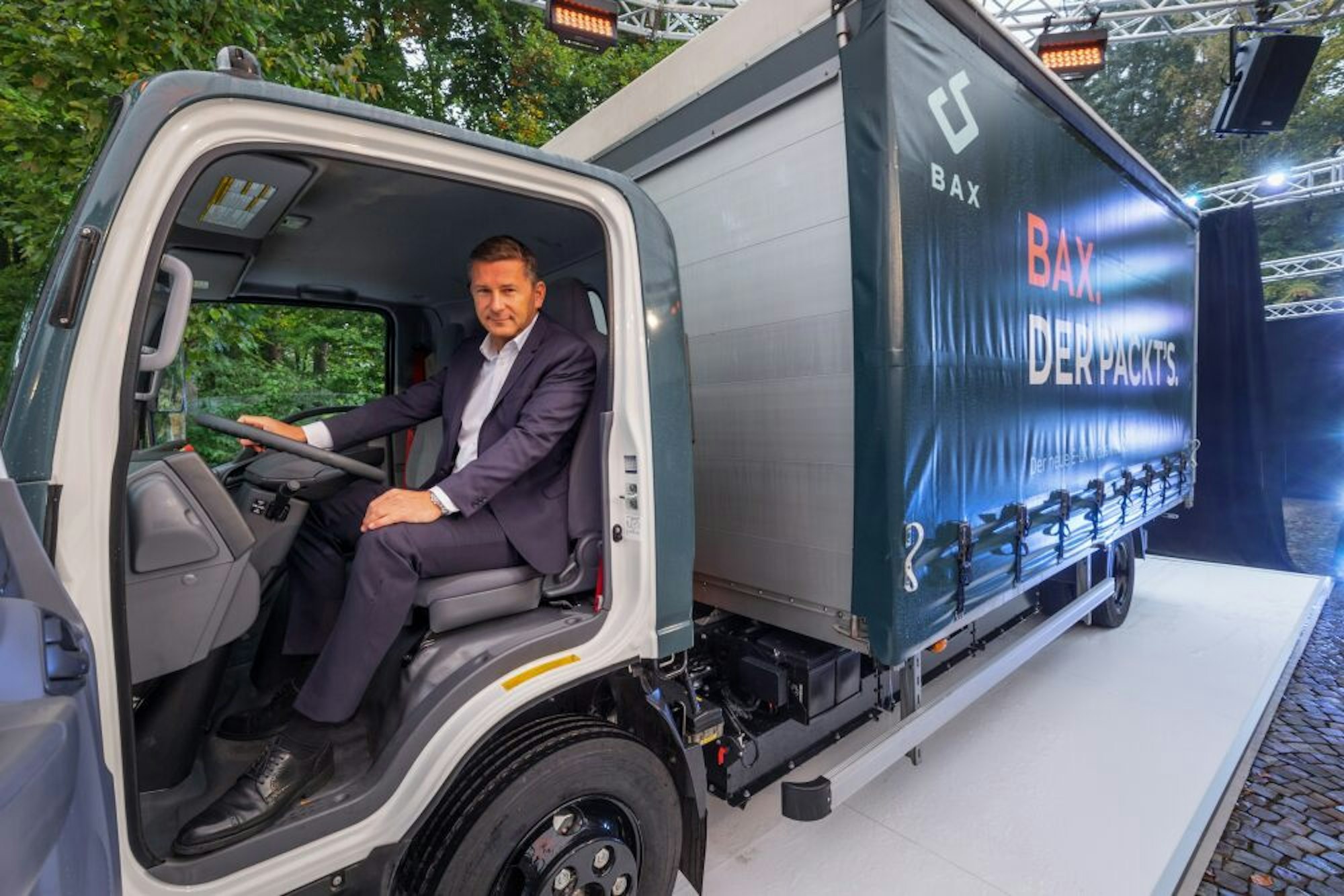 Wiehl – Markus Schell hatte das Besondere des Momentes im Sinn. „Nicht in München, nicht in Stuttgart, nicht in Lyon oder Göteborg stellen wir Ihnen heute unseren neuen E-Lkw vor“, rief der geschäftsführende Gesellschafter der BPW Bergische Achsen KG am Donnerstagmorgen. Kurz darauf öffnete sich der Vorhang, und der erste Bax rollte auf die Bühne.