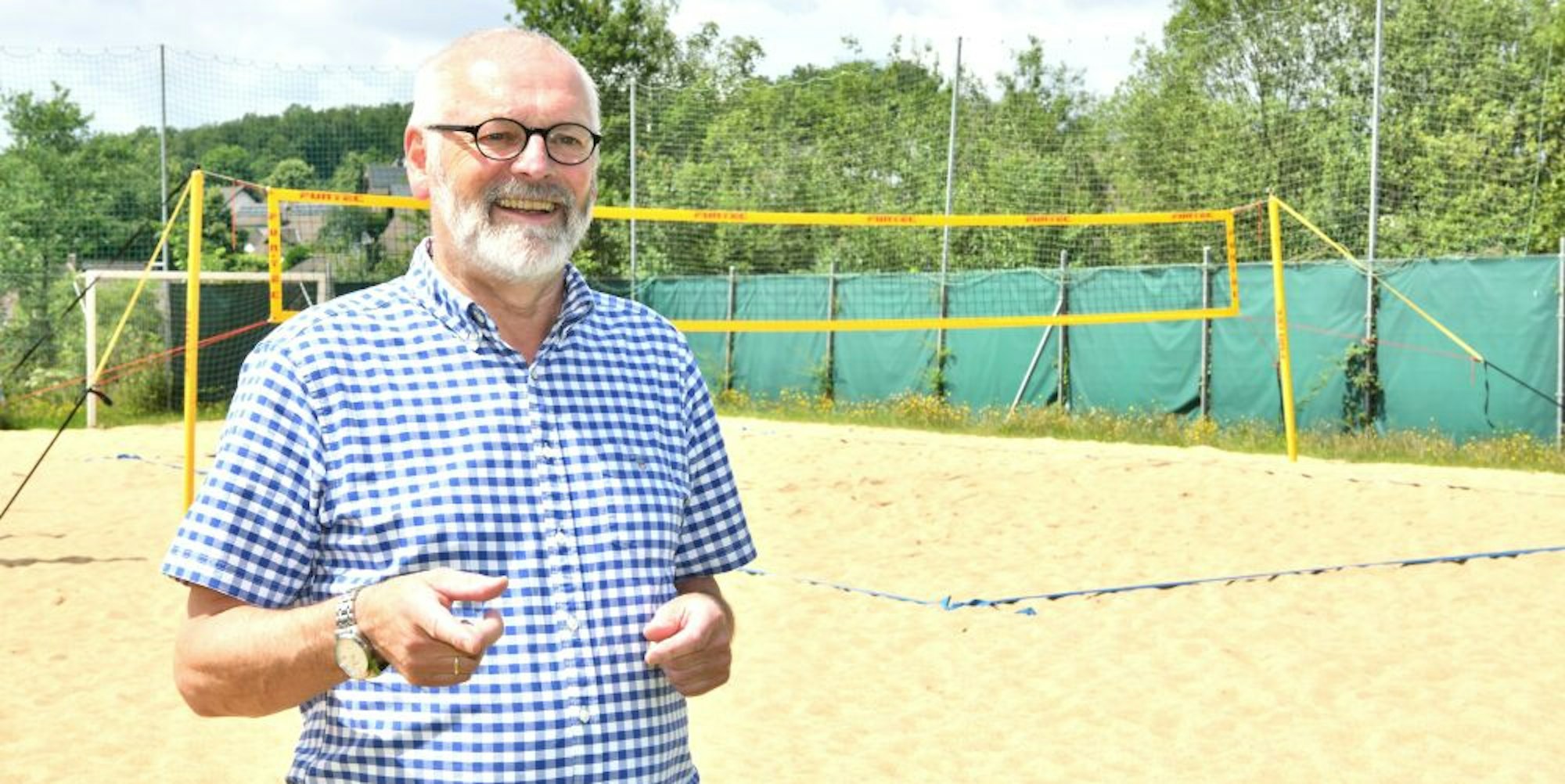 Carlo Riegert vor den Beachhandballfeldern des TV Oberbantenberg, wo er regelmäßig trainiert.