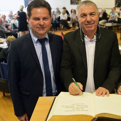 Sie als Oberbergerin habe erheblich zur Sozialisation von Hermann beigetragen, „der ja mehr so’n Imi aus dem Ruhrgebiet war“, scherzte Werner Becker-Blonigen, als ehemaliger Stadtdirektor und Bürgermeister langjähriger Weggefährte des scheidenden Vorsitzenden und Mitglied der offiziellen Delegation, die 1991 in Israel den Partnerschaftsvertrag unterzeichnet hatte. Becker-Blonigen dankte dem Ehepaar Hermann für seinen Mut, sich einem schwierigen Kapitel deutscher Geschichte zu widmen aus der Überzeugung heraus, „dass nur Gespräch und Austausch, auch wenn sie manchmal unangenehm sind, zu einem friedlichen Zusammenleben führen können“ – und das im Falle Gerhard Hermanns „mit einer liebenswerten Hartnäckigkeit und bisweilen Nervigkeit“.