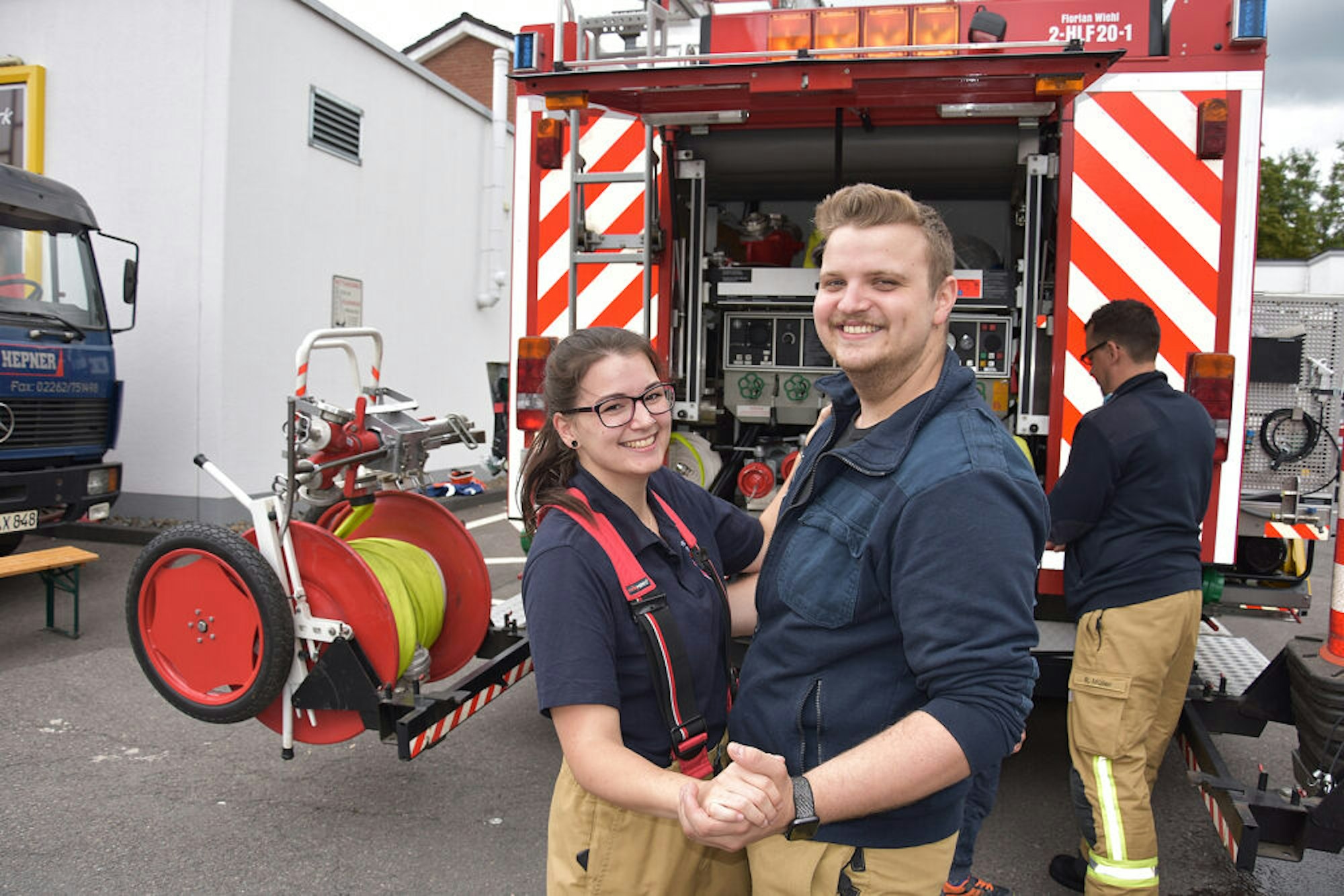 Maximilian Gensel und Berenike Krampe vom Löschzug Oberwiehl der Freiwilligen Feuerwehr ließen sich sogar zu einem Tänzchen hinreißen.
